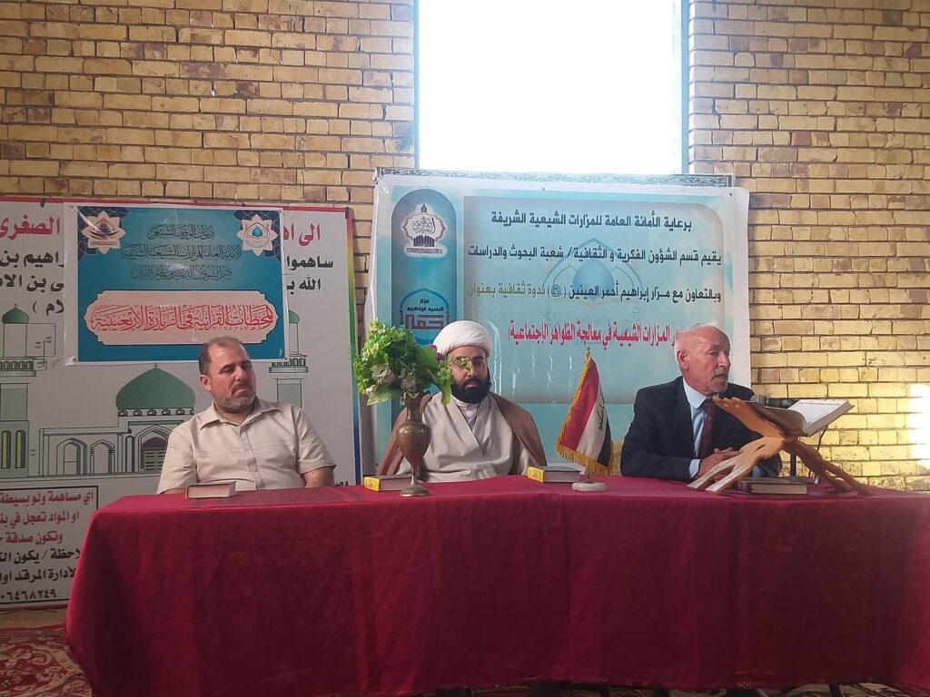 برعاية الأمانة العامة للمزارات الشيعيّة الشريفة في العراق أقام قسم الشؤون الفكرية والثقافية / شُعبة البحوث والدراسات ندوةً فكريةً ثقافية ً في مزارِ السيد إبراهيم أحمر العينين (رضوان الله تعالى عليه) في المثنى بعنوان ” دور المزارات الشيعية الشريفة في معالجة الظواهر الاجتماعية ” ، وبمُشاركةِ عددٍ من المؤمنين .