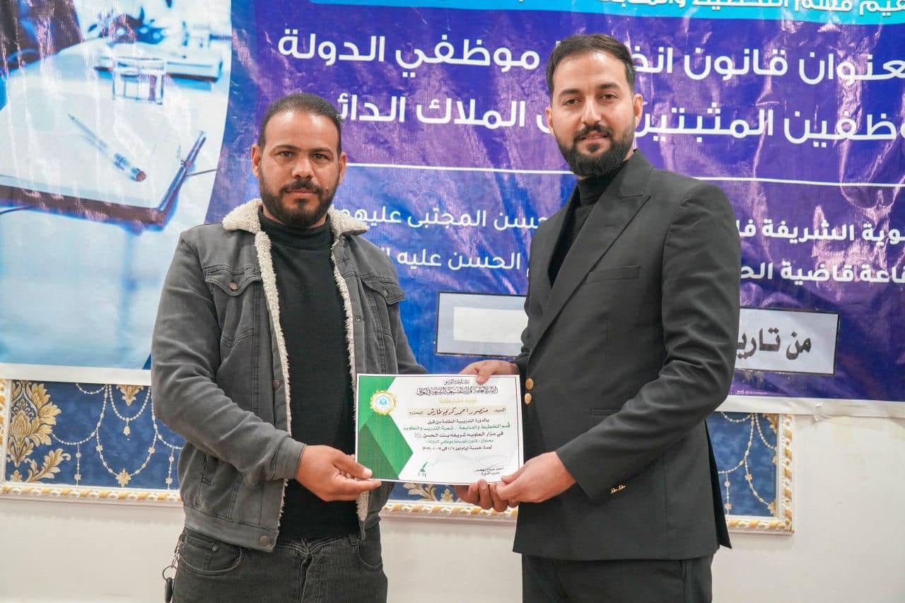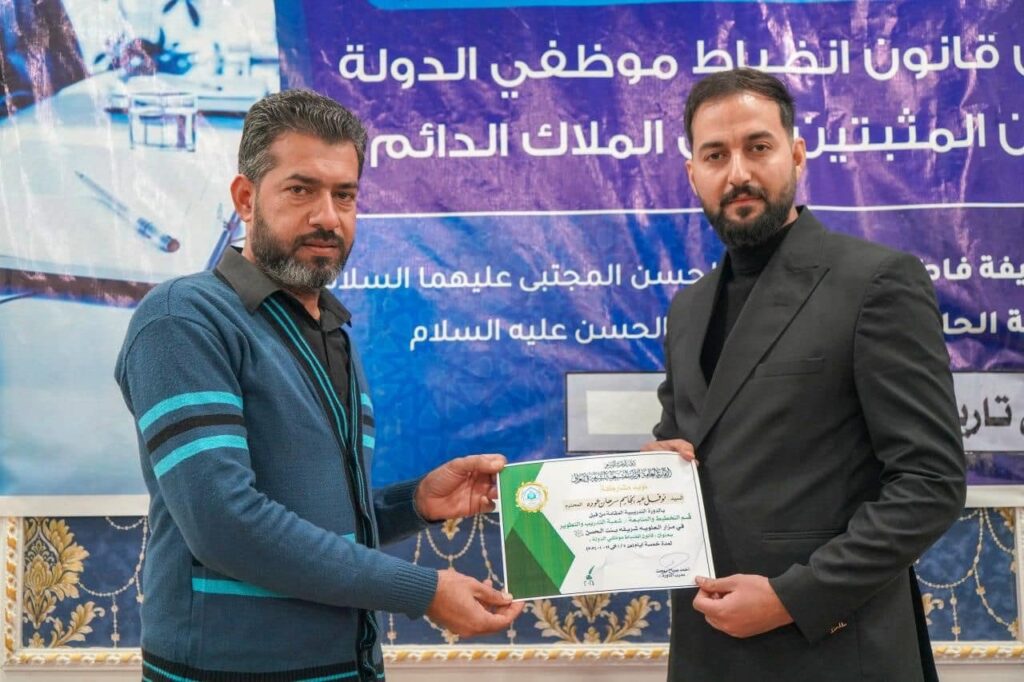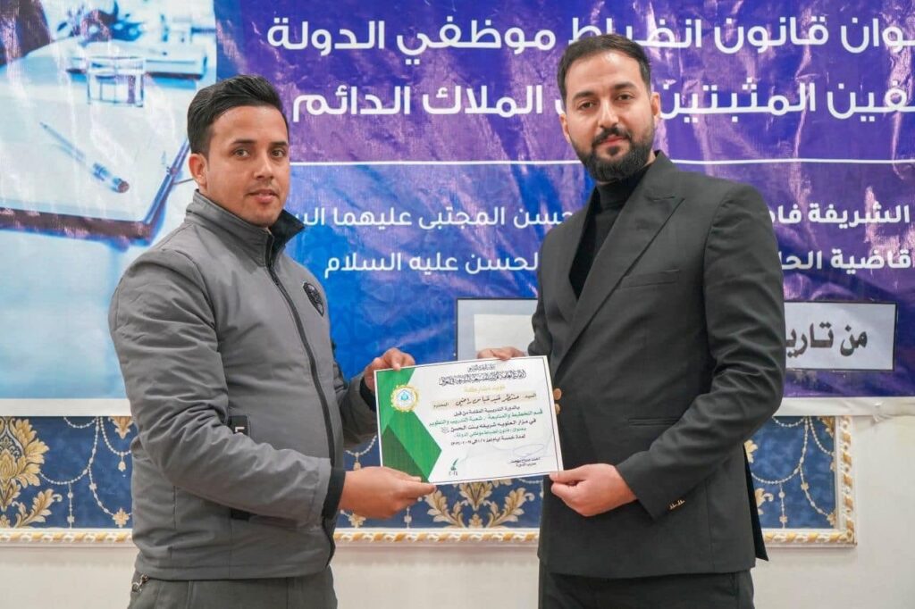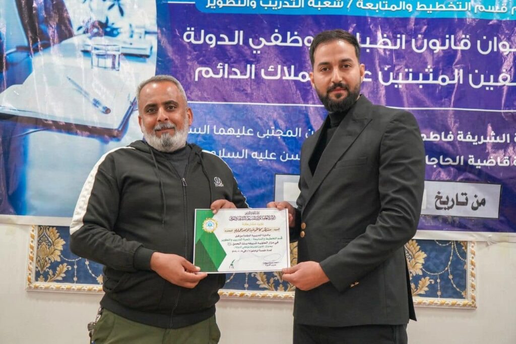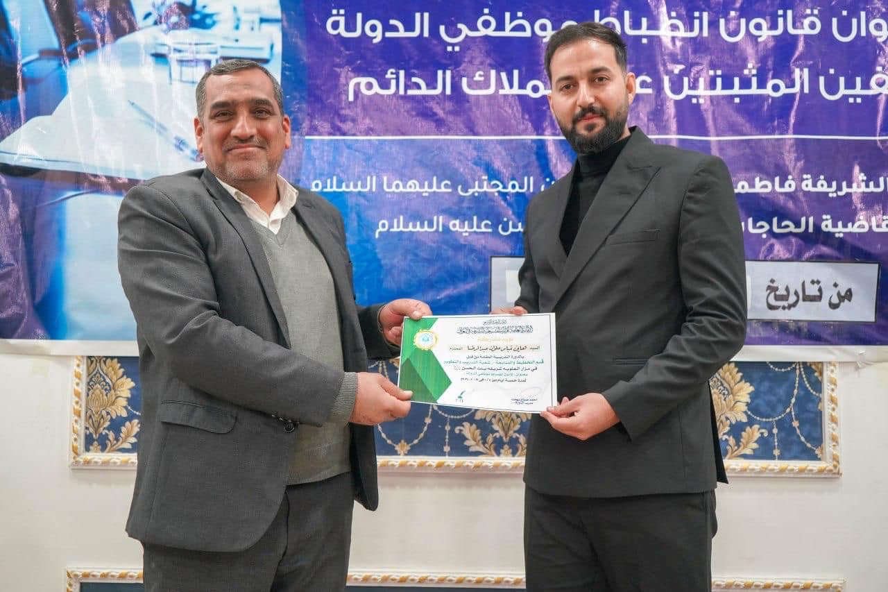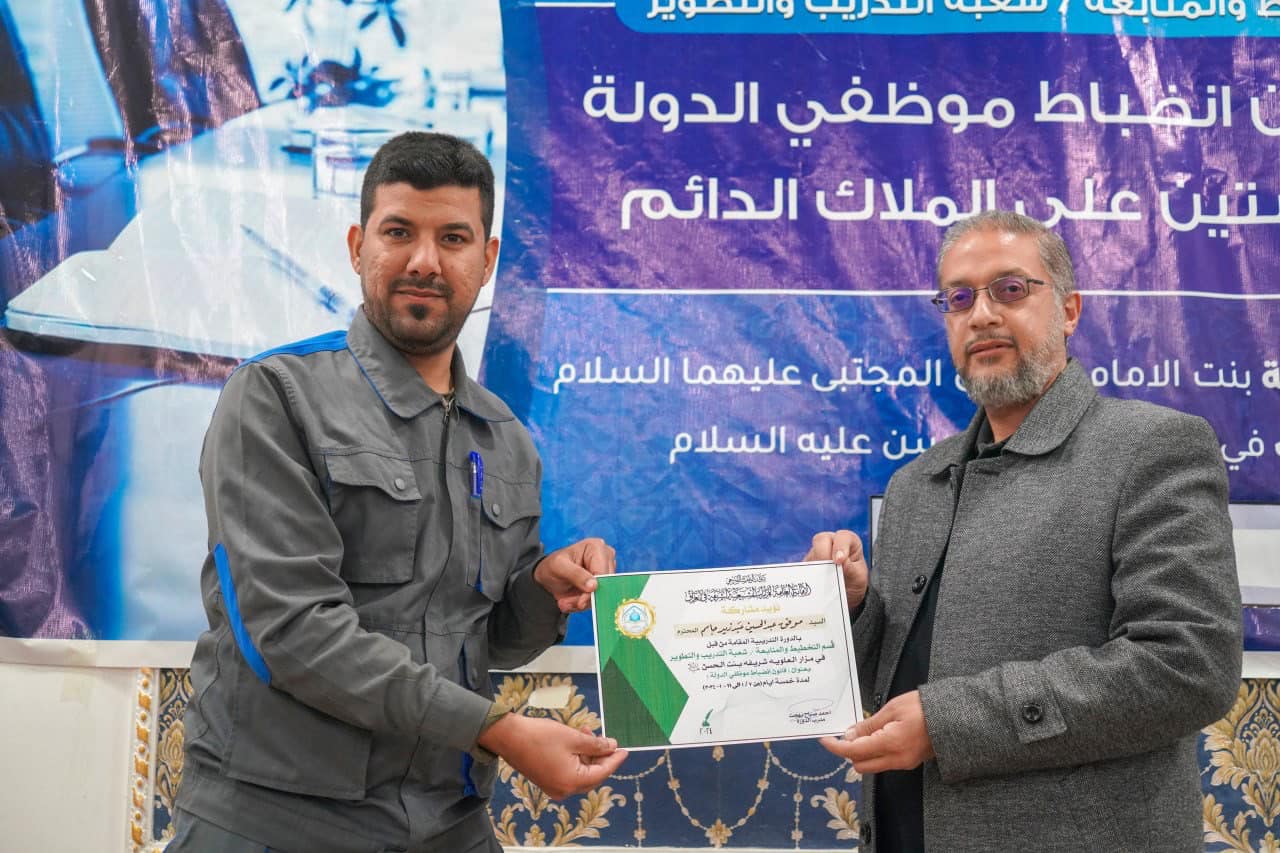بتوجيهٍ مُباشر من قبلِ السيد نائب الأمين العام للمزاراتِ الشيعيةِ الشريفةِ رئيس مهندسين أقدم السيد محمد عباس شنون المُحترم ، وبمُتابعةِ رئيس قسم التخطيط والمُتابعة الأستاذ علي حازم المُحترم اختتمَ قسم التخطيط والمُتابعة دورته بعنوان قانون إنضباط موظفي الدولة مع موظفي مزار العلوية الطاهرة الشريفة فاطمة بنت الإمام الحسن المُجتبى (عليه السَّلام) ، وحاضرَ بها الأستاذ أحمد صباح .
