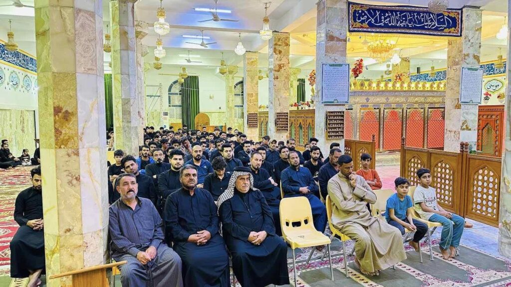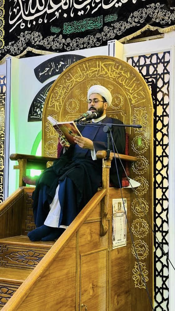 حيثُ ألقى الشيخ مثنى الربيعيّ محاضرته التي تضمّنت سيرة حياة الإمام الجليلة .