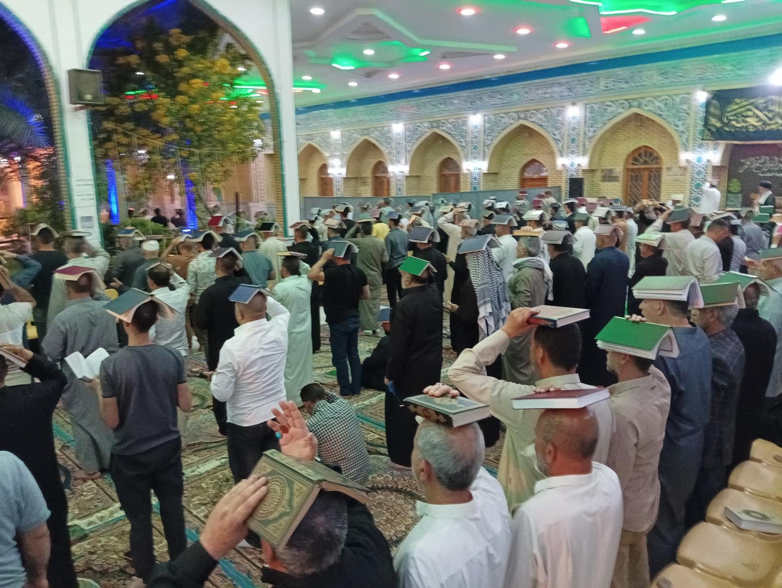 و دأبت الأمانة الخاصة للمزار وفي كل عام على إعداد برنامج عبادي خاص بهذه الليلة المباركة ، وابتدأ البرنامج العبادي بإقامة مجلس الوعظ والإرشاد ، من ثم قراءة الجزء المخصص لهذه الليلة من القرآن الكريم، وبعد ذلك قراءة دعاء رفع المصاحف، ومن ثم قراءة زيارة الإمام الحسين (عليه السلام) ، وبعض الأدعية المأثورة المخصصة لهذه الليلة وبعدها قراءة دعاء الجوشن الكبير، وختاما صلاة براءة ما في الذمة جماعة ل(١٠٠)ركعة وأخيراً تم توزيع وجبة السحور تبركاً .