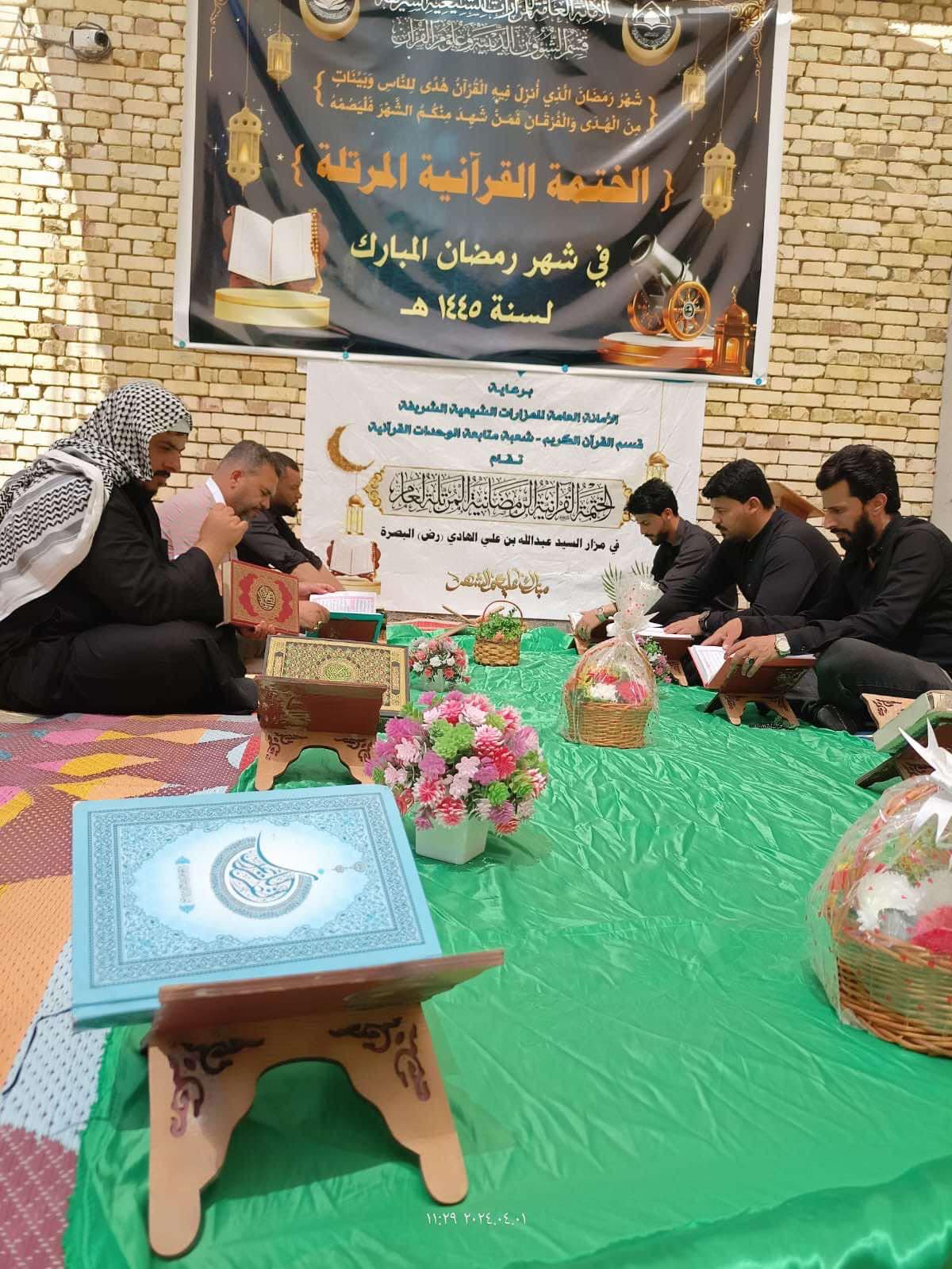 برعايةِ الأمانةِ العامةِ للمزاراتِ الشيعيةِ الشريفةِ شهدت أمانة مزار عبد الله بن الإمام علي الهاديّ (عليه السَّلام) في البصرة استمرار إقامة الختمة القُرآنية الرمضانية المُرتلة والتي ابتدأت منذ اليوم الأول من الشهر الفضيل ، وذلك في أروقة المزار الشريف , وبحضورِ جمعٍ من القُراء والمؤمنين ، إضافةً إلى إقامة المُحاضرات الدينية ومجالس الوعظ والإرشاد الرمضانيّ .