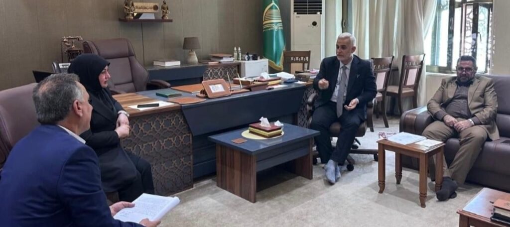 أستقبل معالي رئيس ديوان الوقف الشيعي الدكتور حيدر الشمري المُحترم ، النائبة مديحة الموسويّ والنائب ياسر الحسينيّ والنائب حسين السعبريّ وعدد من اعضاء مجلس محافظة بابل في مكتبه في بغداد.