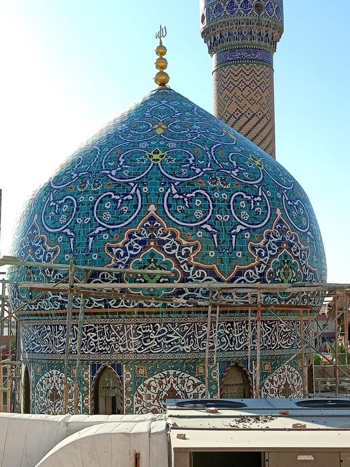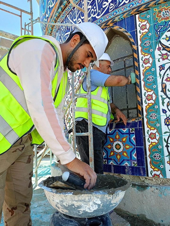 وأضافت ” ان العمل تضمن صيانة القُبة الخارجية من الخارج مع (الشربتة) ، بتثبيت الكاشي الكربلائيّ بحُلة جديدة مع الطلاء وحسب المواصفات المطلوبة .