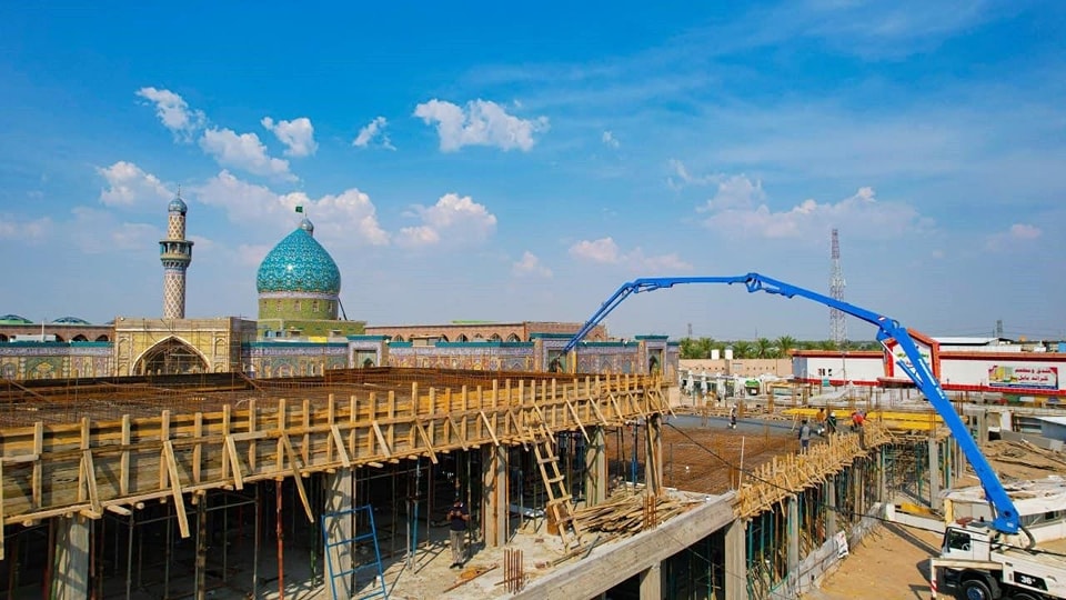 برعاية الأمانة العامة للمزارات الشيعية الشريفة ، وضمن مشروع بناء الأواوين تستمر الكوادر الهندسية والفنية في الأمانة العامة للمزارات ، وبإشراف الأمانة الخاصة لمزار العلوية الطاهرة شريفة بنت الإمام الحسن المجتبى (عليه السلام) في بابل بأعمال صب سطح المجمع الصحي رقم 3 في مشروع الأواوين من جهة رواق الإمام الحسن المجتبى (عليه السلام) والذي ينضوي ضمن مشروع توسعة المزار الشريف .