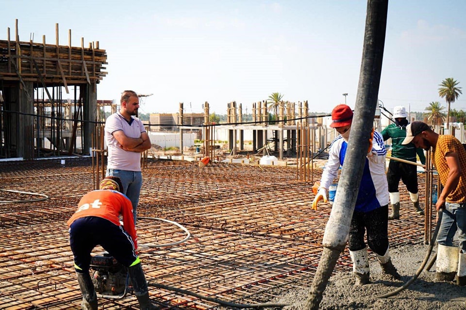الكوادر الهندسية والفنية في الأمانةِ العامةِ للمزاراتِ تستمر بأعمال الصب في سطح البناية رقم (3) ضمن المجمع الصحي في مزار العلوية شريفة بنت الإمام الحسن (عليه السلام)
