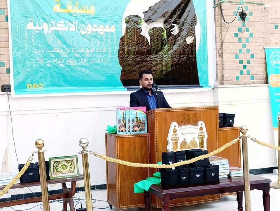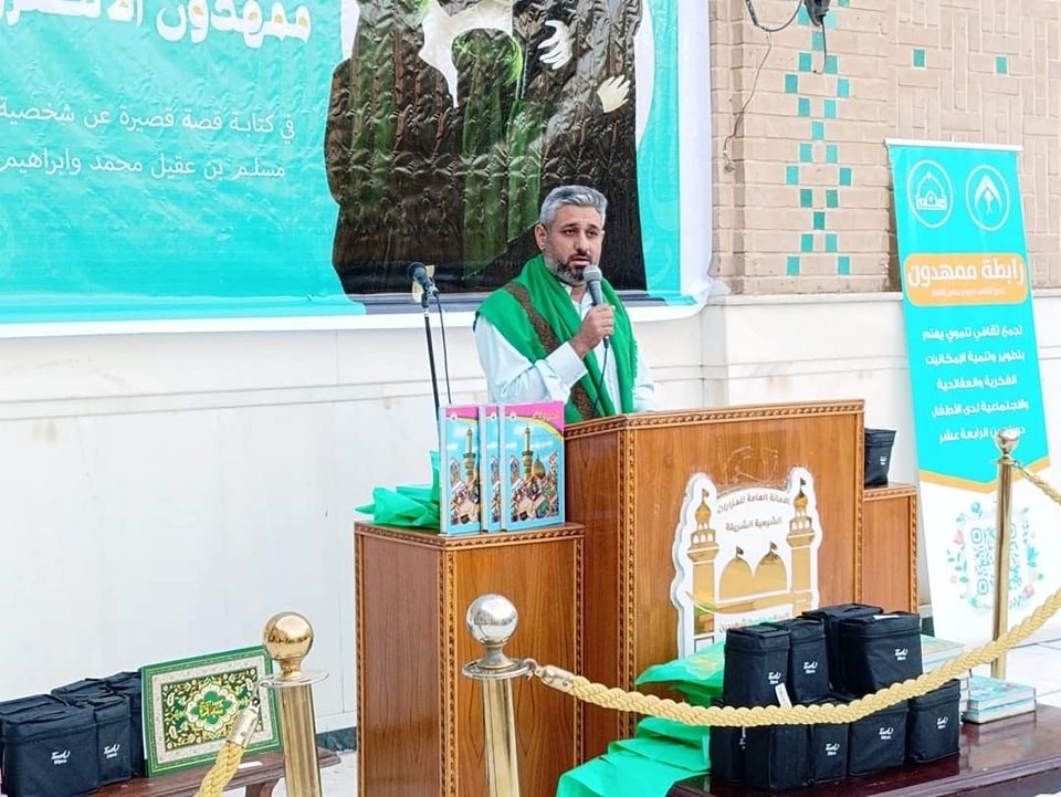 نظّم قسم رعاية وتنمية الطفولة في العتبة الحُسينية المُقدّسة محفلاً دينياً لتكريم الطلبة المُتفوقين في مسابقة ممهدون الإلكترونية (كتابة قصة قصيرة عن شخصية محمد وإبراهيم ولدي مسلم بن عقيل (رضوان الله تعالى عليه) في بابل .