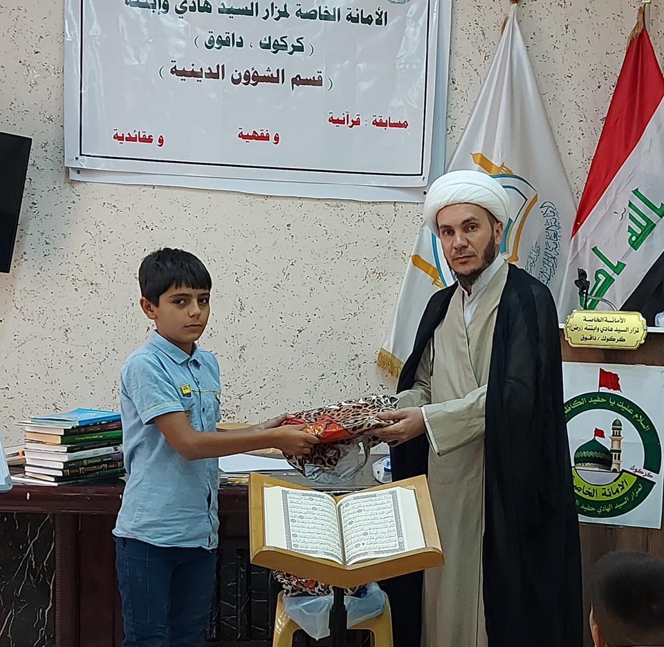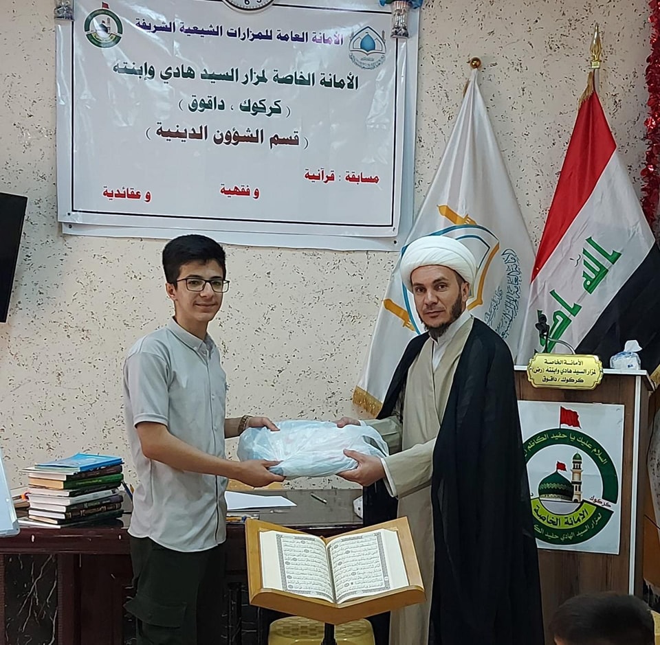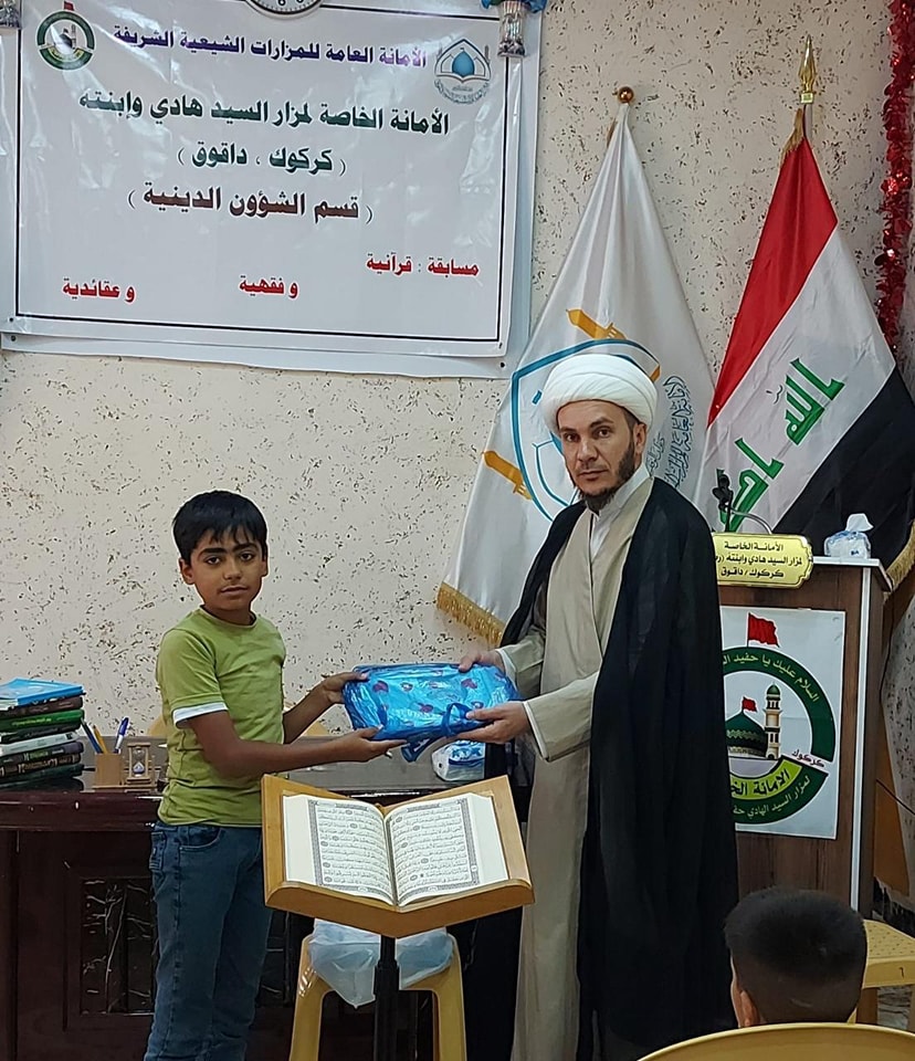 أجرت أمانة مزار السيد هادي وابنتهُ (رضوان الله تعالى عليهما) في كركوك / داقوق مسابقةً قُرآنيةً وفقهيةً وعَقائديةً للطلبة في قاعة النشاطات الدينية في المزار الشريف .