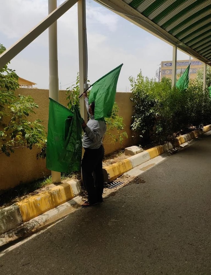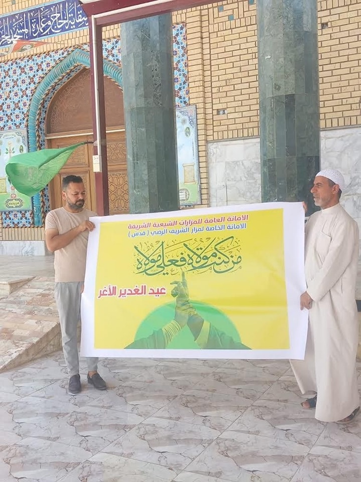 وتمَّ رفع رايات عيد الغدير في أرجاء أروقة المزار الشريف .