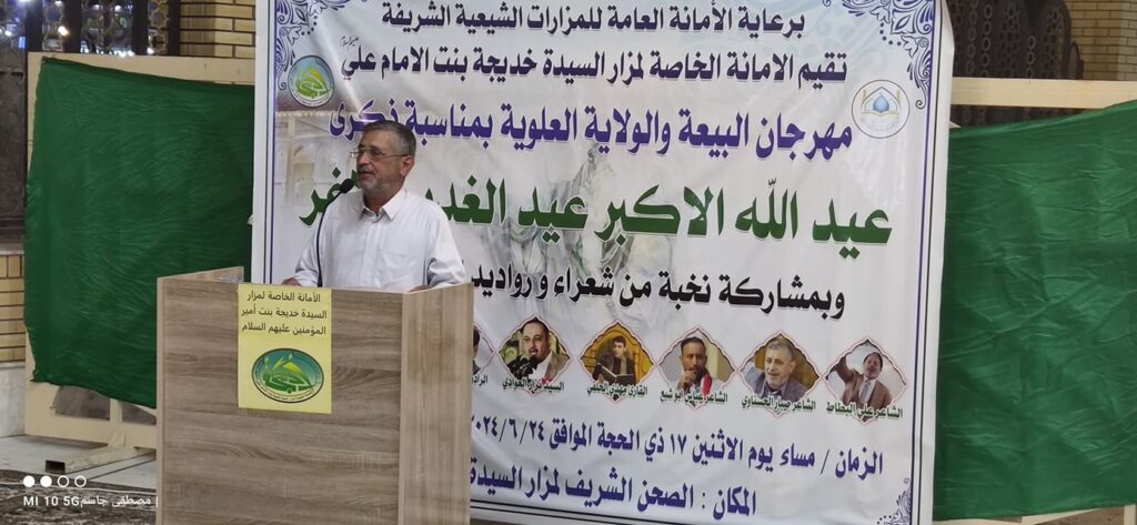 أحيت حشود الزائرين في مزارِ السيدة خَديجة بنت الإمام علي (عليه السّلام) في النجف الأشرف ذكرى تتويج أمير المؤمنين إماماً وخليفةً على المُسلمين، وبرعايةِ الأمانةِ العامّةِ للمزاراتِ الشيعيةِ الشريفةِ .
