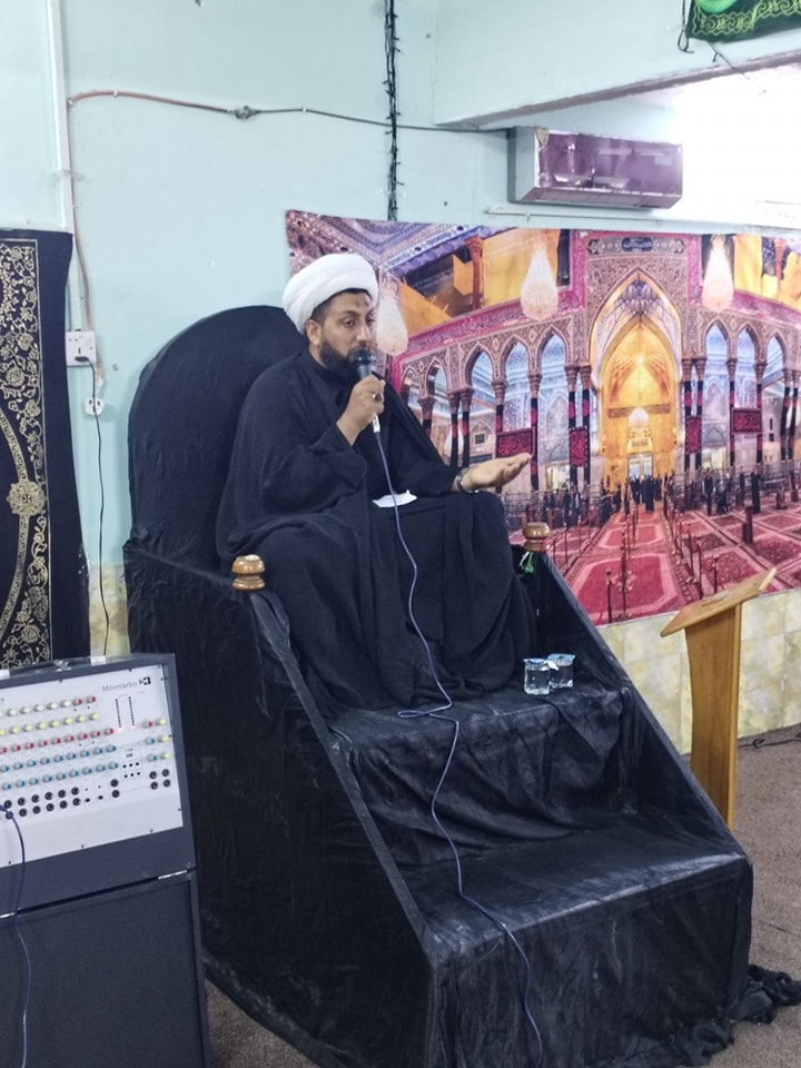 وأقيمت محاضرة دينيّة في اليوم السادس ليلة الأنصار بعنوان : (فلسفة طلب النصرة) لمسؤول الوحدة الدينية في المزار الشّريف الشيخ عقيل السعيدي بيّن تسفير قوله تعالى : (۞ فَلَمَّا أَحَسَّ عِيسَىٰ مِنْهُمُ الْكُفْرَ قَالَ مَنْ أَنصَارِي إِلَى اللَّهِ ) . أي مفهوم وفلسفة طلب النصرة من النّاس ، بحضورِ جمعٍ من المؤمنين المعزين الكرام .