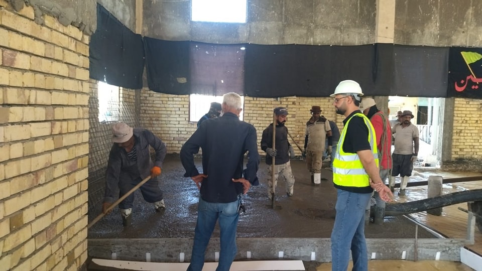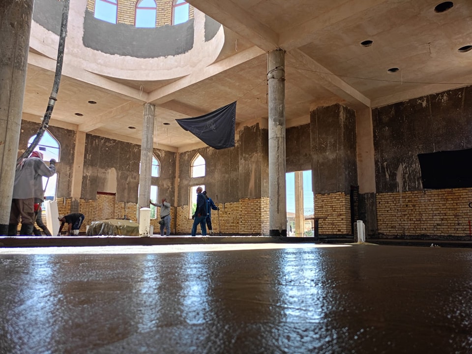 صب أرضية حرم السيد عبد الله بن الإمام موسى الكاظم ( عليه السلام ) في محافظة الديوانية