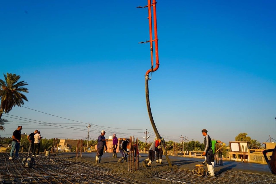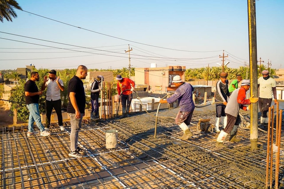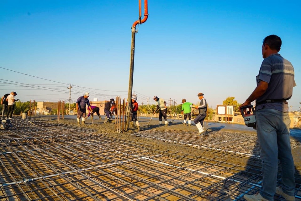 الكوادر الهندسية والفنية التابعة الى الأمانة الخاصة للمزار الشريف تستمر بصب سطح الطابق الأول للبناية رقم (11) في مشروع الأواوين
