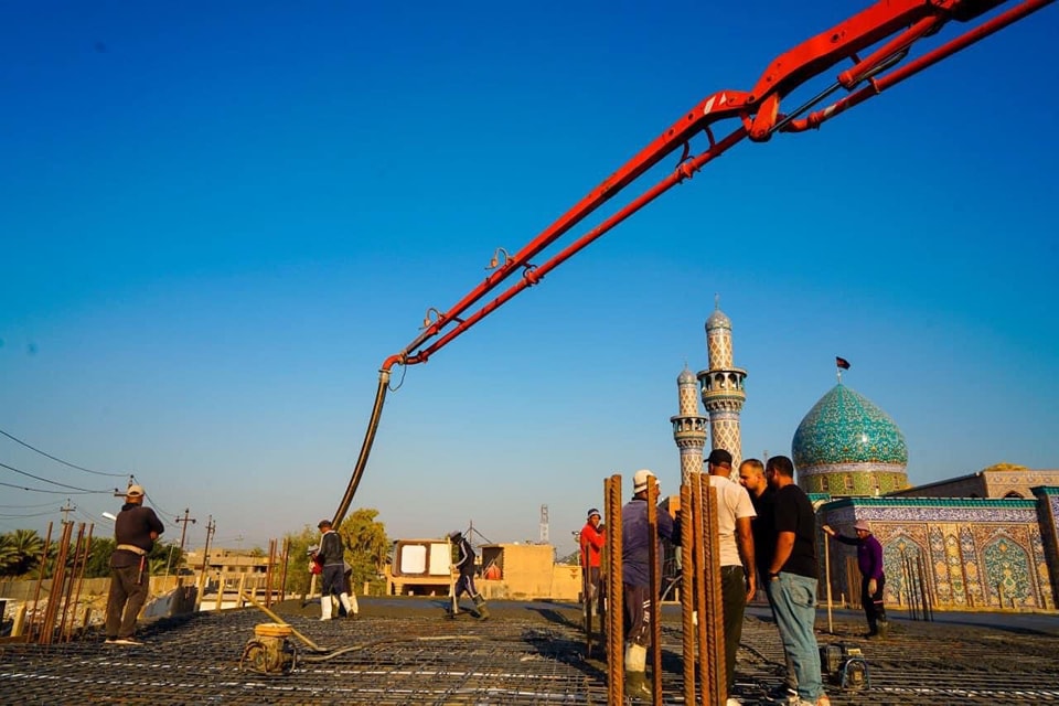 بصب سطح الطابق الأول للبناية رقم(11) في مشروع الأواوين من جهة الرواق الغربي للمزار الشريف ، والذي ينضوي ضمن مشروع التوسعة ، حيث يتم تمويل هذا المشروع من الأموال المخصصة للبناء في الهدايا والنذور في المزار الشريف .