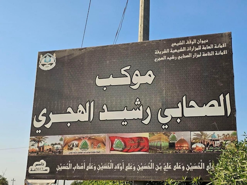 برعاية الامانة العامة للمزارات الشيعية الشريفة وتوجيه وإهتمام السيد نائب الأمين العام رئيس مهندسين أقدم محمد عباس شنون المُحترم ، أفتتحت الأمانة الخاصة لمزار الصحابي الجليل رُشيد الهجريّ ( رضوان الله تعالى عليه) موكباً على الطريق الرابط بين الكوفة وكربلاء المُقدسة لتقديم مختلف أنواع الخدمات لزائري أربعينية الإمام الحسين (عليه السلام) ، حيث يتم التوزيع منذ ساعات الصباح الأولى وحتى ساعات متأخرة من الليل، فضلاً عن وجود مفارز طبية تابعة للموكب واجبها تقديم الخدمات الطبية والإرشادات الصحية والإسعافات الأولية للزائرين الكرام .