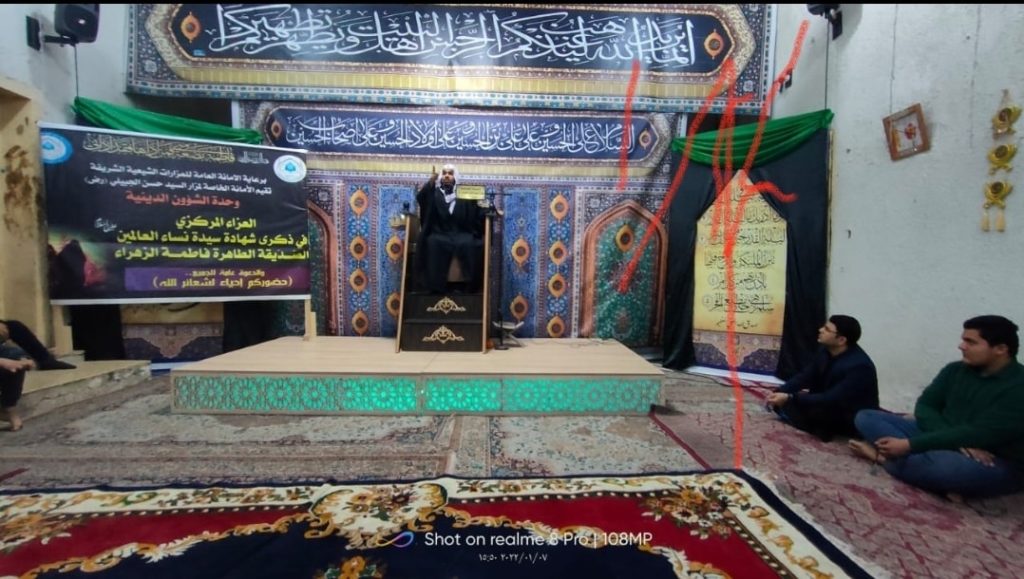 في أجواءٍ ملؤها الحُزن والأسىٰ والمواساة لصاحب العصر و الزمان (عجلَ اللهُ تعالىٰ فرجهُ الشّريف) وبرعايةِ الأمانةِ العامّةِ للمزاراتِ الشيعيةِ الشريفةِأقامت الأمانةُ الخاصّة لمزارِ السيد حَسن الجُبيليّ (رضوان الله تعالىٰ عليه) / وحدة الشؤون الدينية في البصرة مجلسَ عزاءٍ بذكرىٰ استشهاد السيدة فاطمة الزهراء (عليها السَّلام) وفق الرواية الثالثة .حيثُ اُفتتح المجلسُ بتلاوةٍ مباركةٍ من الذكرِ الحكيم للقارئ سجاد مشتاق أحد طلبة وحدة القُرآن الكريم في المزارِ الشريف ، ثمَّ أرتقىٰ المِنبر سماحة الشيخ كرار البحرانيّ ، مُتحدّثاً عن مصائب الزهراء (عليها السَّلام) ، بحضورِ جمعٍ من الزائرين المُعزين بهذه الذكرىٰ الأليمة .