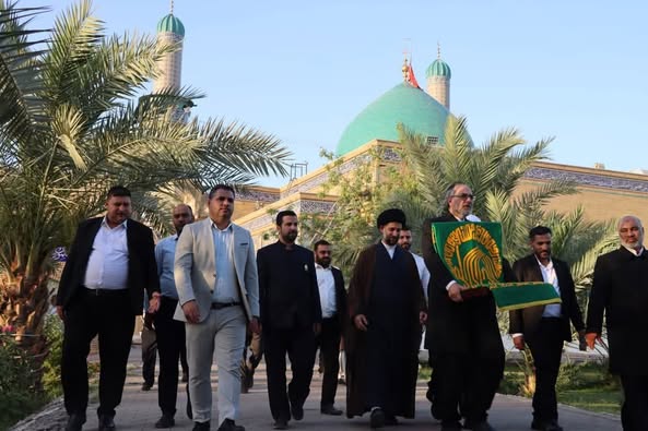 هذا وقدّم السيّد الأمين الخاص للمزار رآية قبة المزار الشريف إلى الوفد الضيف، تثمينًا لهذه المبادرة التي تعزّز الارتباط بين مراقدنا المقدسة. من جانبهم، تقدّم الوفد الضيف بالشكر لحسن الإستقبال والضيافة.