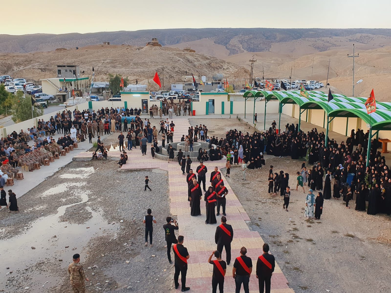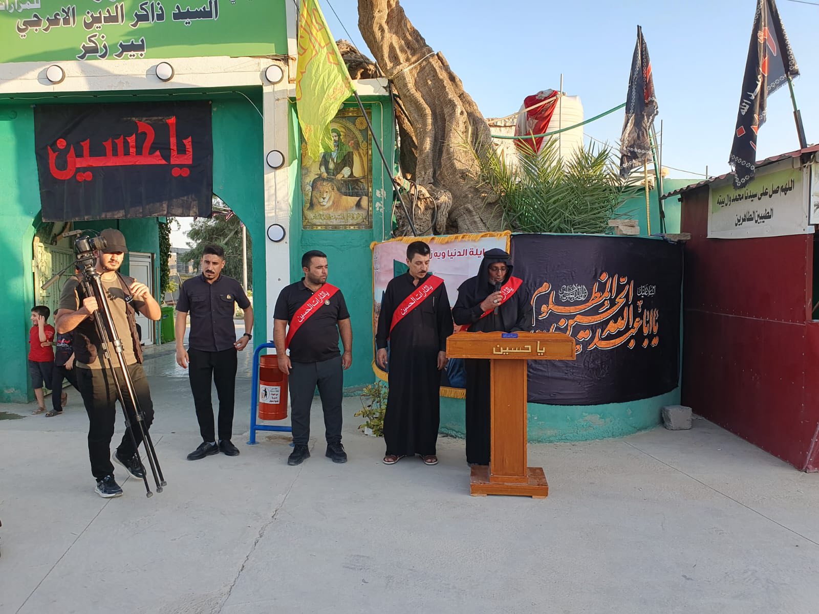 وأقيمت المراسم وسط أجواء من الحزن والخشوع حيثُ تمَّ رفع الرايات السوداء فوق القباب الشريفة بحضورِ جمع من رجال الدين والمؤمنين ووجهاء المدينة.