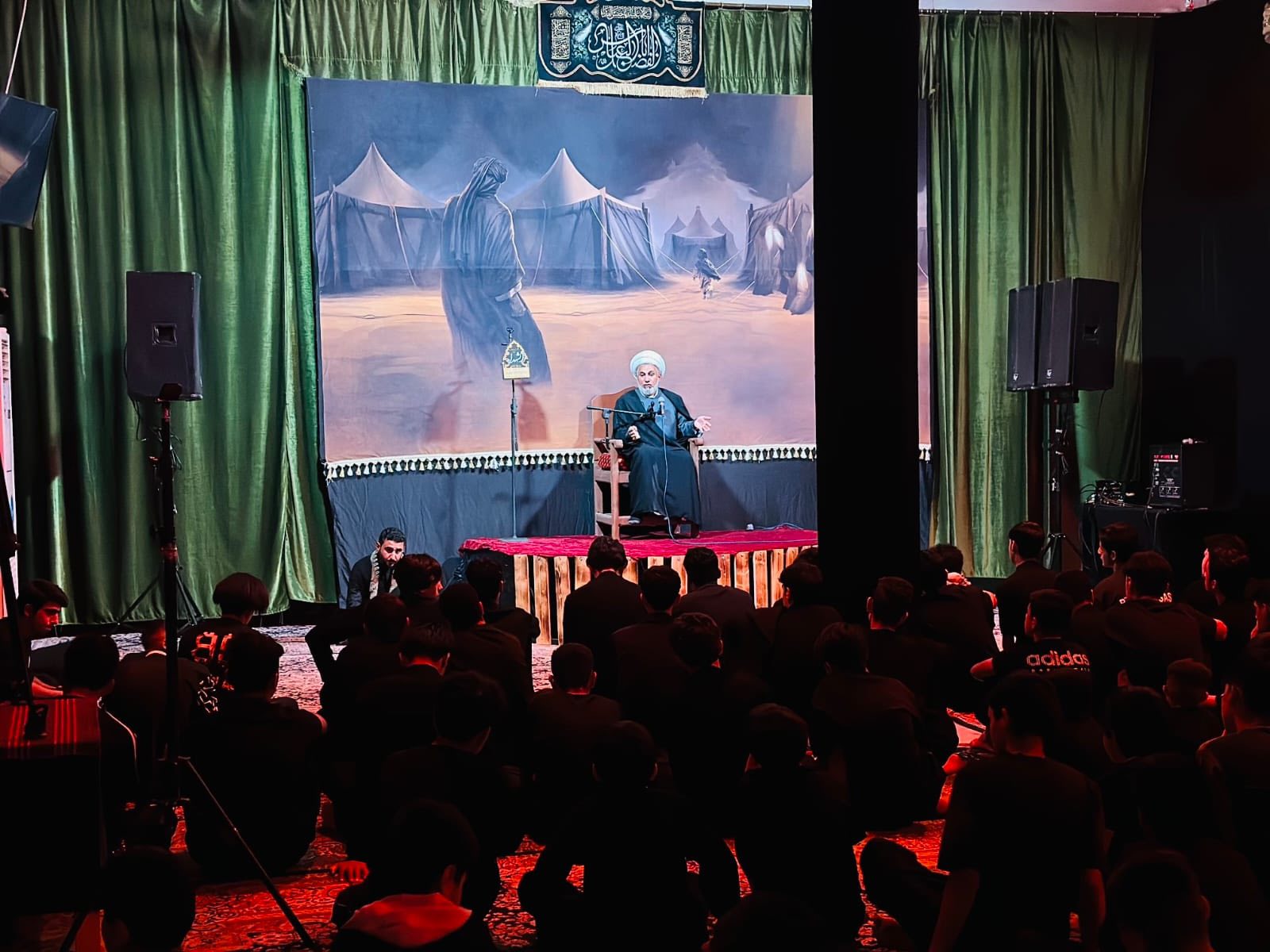 حيث ارتقى المنبر الشيخ عرفات المنصوري مستعرضاً ملامح ثورة الإمام الحسين (عليه السلامُ) وأبعادها الإيمانية والإنسانية.