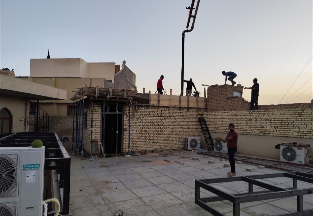 وقد تم تجهيز المواد اللازمة لصب السقف في ساعات الفجر الأولى وذلك لتجنّب التأثير على حركة السير والمواطنين، نظراً لموقع المزار داخل السوق المركزي لمدينة الحلة.