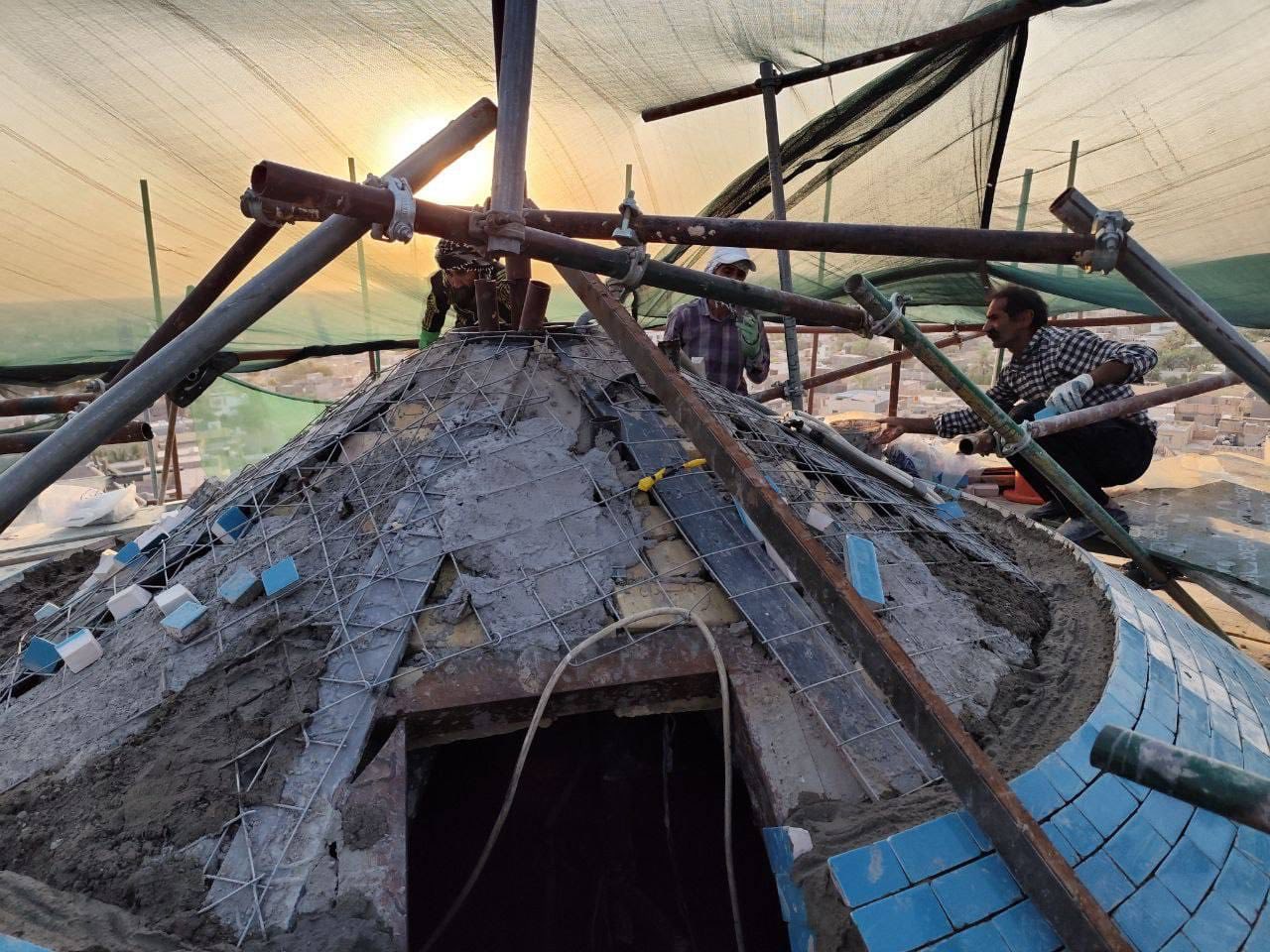 تتواصل في مزار المولى أبي يعلى الحمزة الغربي (رضوان الله تعالى عليه) في بابل أعمال تغليف القبة المطهرة بالكاشي الكربلائي ، حيث وصلت الملاكات الفنية والهندسية إلى المراحل النهائية من المَشروع ، وسط أجواء من الجهد المتواصل والدقة العالية في التنفيذ .