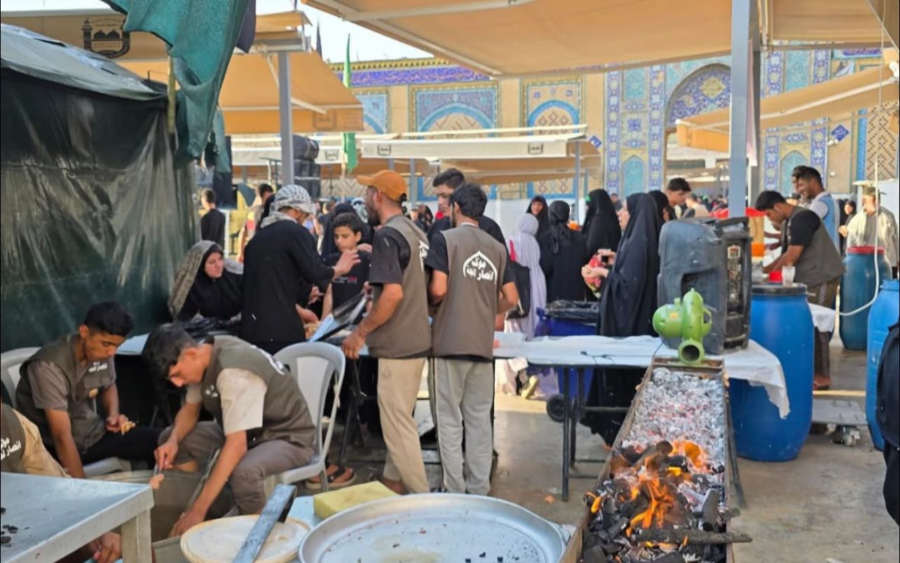وفي أجواء مفعمة بالخدمة والإخلاص، تواصل المواكب الخدمية المنتشرة داخل وحول المزار تقديم مختلف أنواع الدعم للزائرين، من طعام وشراب وخدمات طبية ومبيت.
