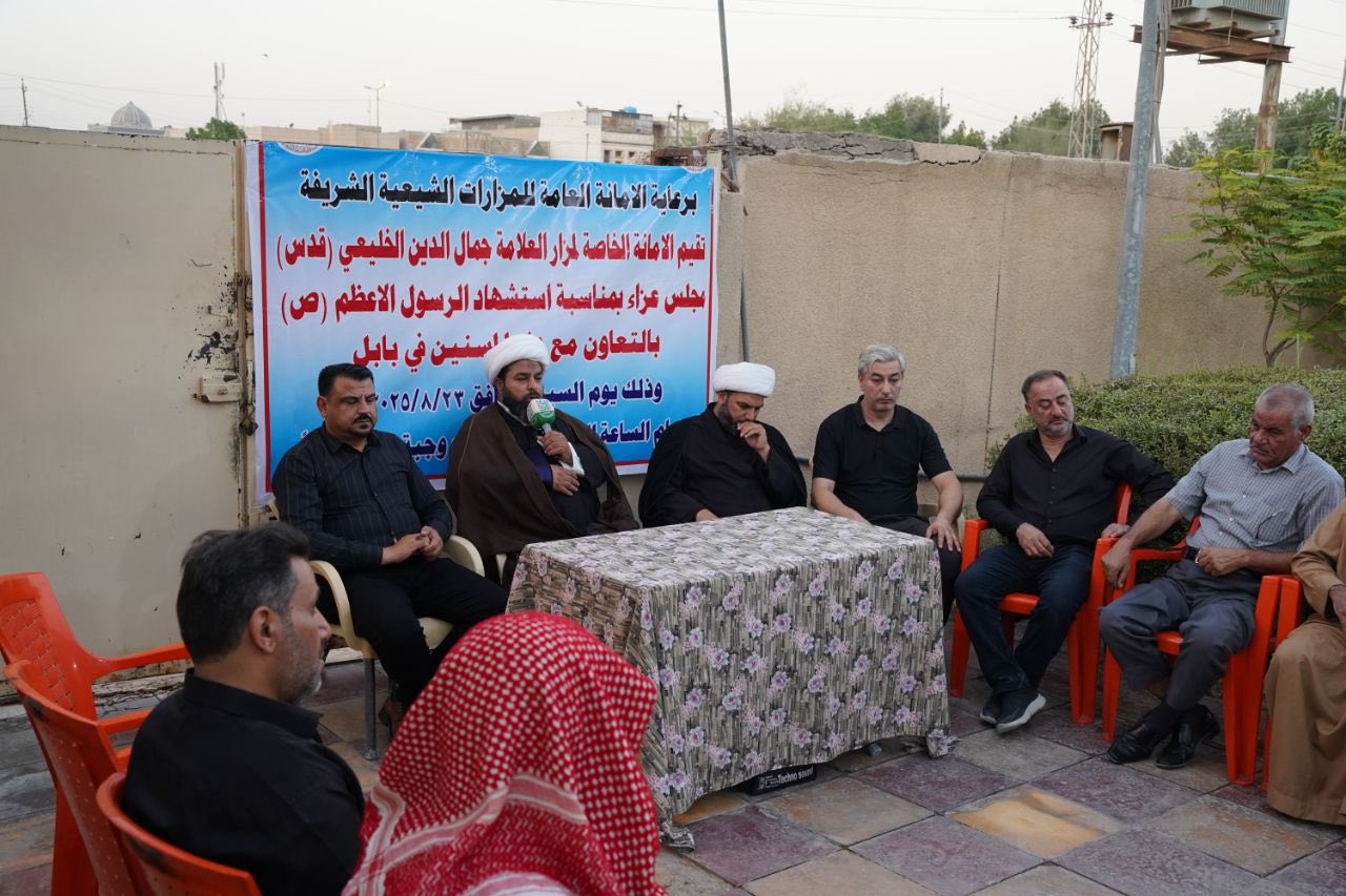 توشّح مزار العلامة جمال الدين الخليعي (رضوان الله تعالى عليه) في بابل بالحزن حيثُ أقامت أمانته الخاصة بالتعاون مع دار المسنين مجلس عزاء مهيب برعاية الأمانة العامة للمزارات الشيعية الشريفة استذكاراً لرسالة النبي الأعظم التي قامت على الرحمة والعدل والإصلاح.