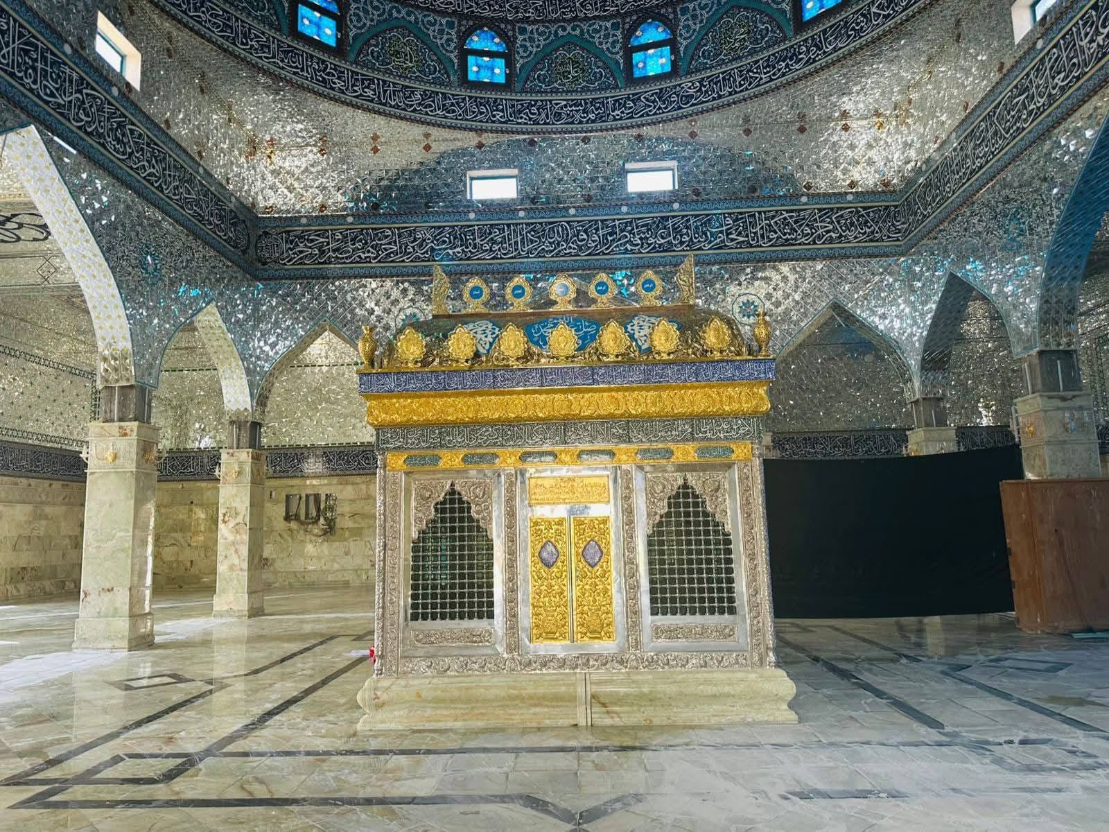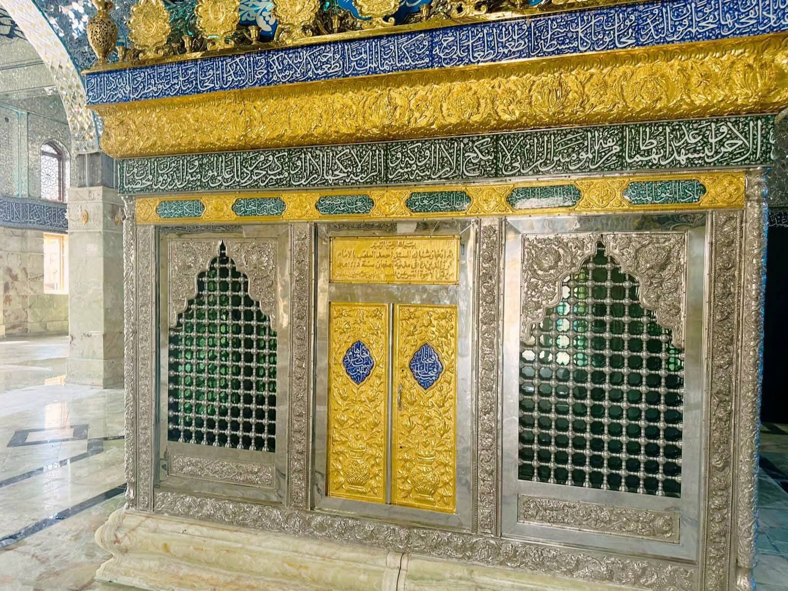 في مشهد يفيض قداسة وجلالًا أزاحت إدارة مزار السيّد أحمد بن جعفر الطيّار بن أبي طالب (عليه السلام) الستار عن الشباك الذهبي الجديد المنقوش بأسماء الله الحسنى وآيات القرآن الكريم وأسماء أهل البيت (عليهم السلام) ليُشكل لوحة فنية إسلامية باذخة الطراز.