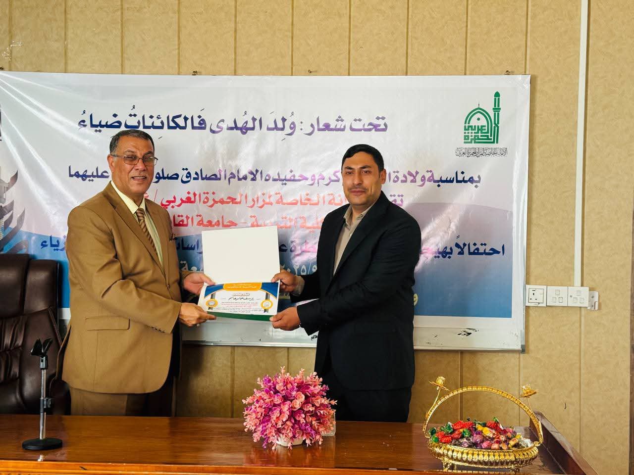 أمانة مزار الحمزة الغربي (رضوان الله تعالى عليه) تقيم احتفالها المركزي بالتعاون مع كلية التربية – جامعة القادسية