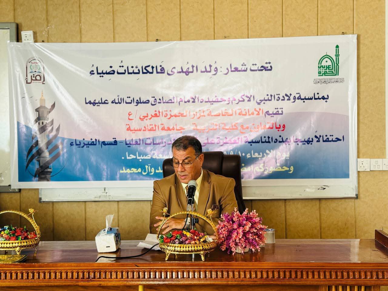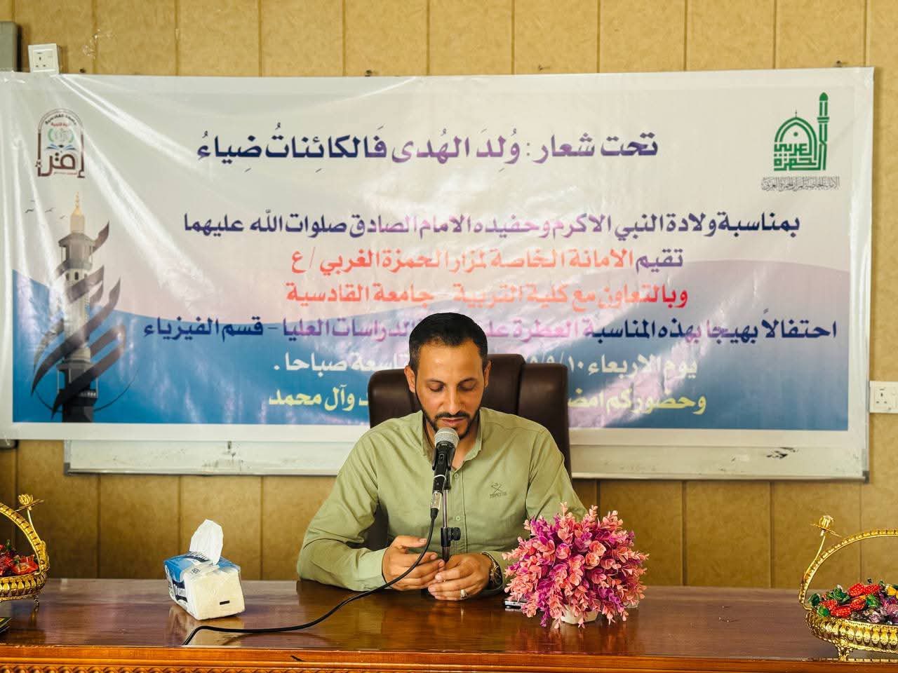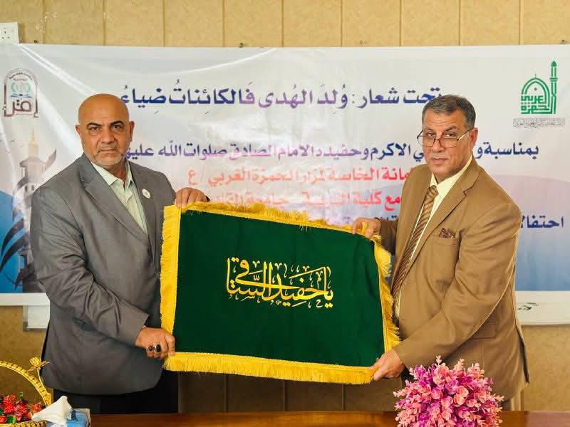 أقامة أمانة مزار الحمزة الغربي (رضوان الله تعالى عليه)في بابل احتفاله المركزي بمناسبة ذكرى ولادة النبي الأكرم محمد (صلى الله عليه وآله وسلم) وحفيده الإمام جعفر الصادق (عليه السلام) وذلك على قاعة الدراسات العليا في قسم الفيزياء – كلية التربية بجامعة القادسية، وبالتعاون مع عمادة الكلية.