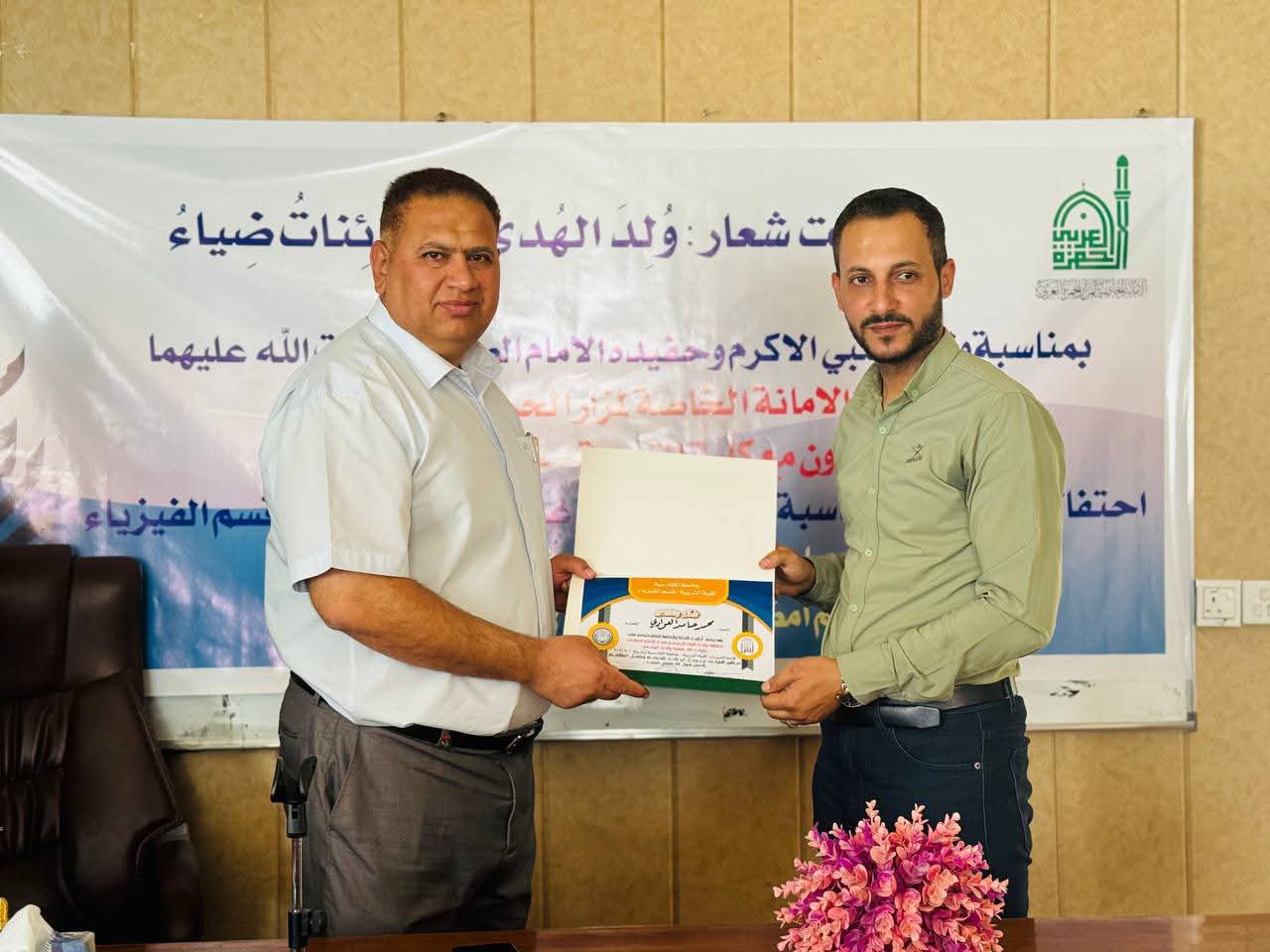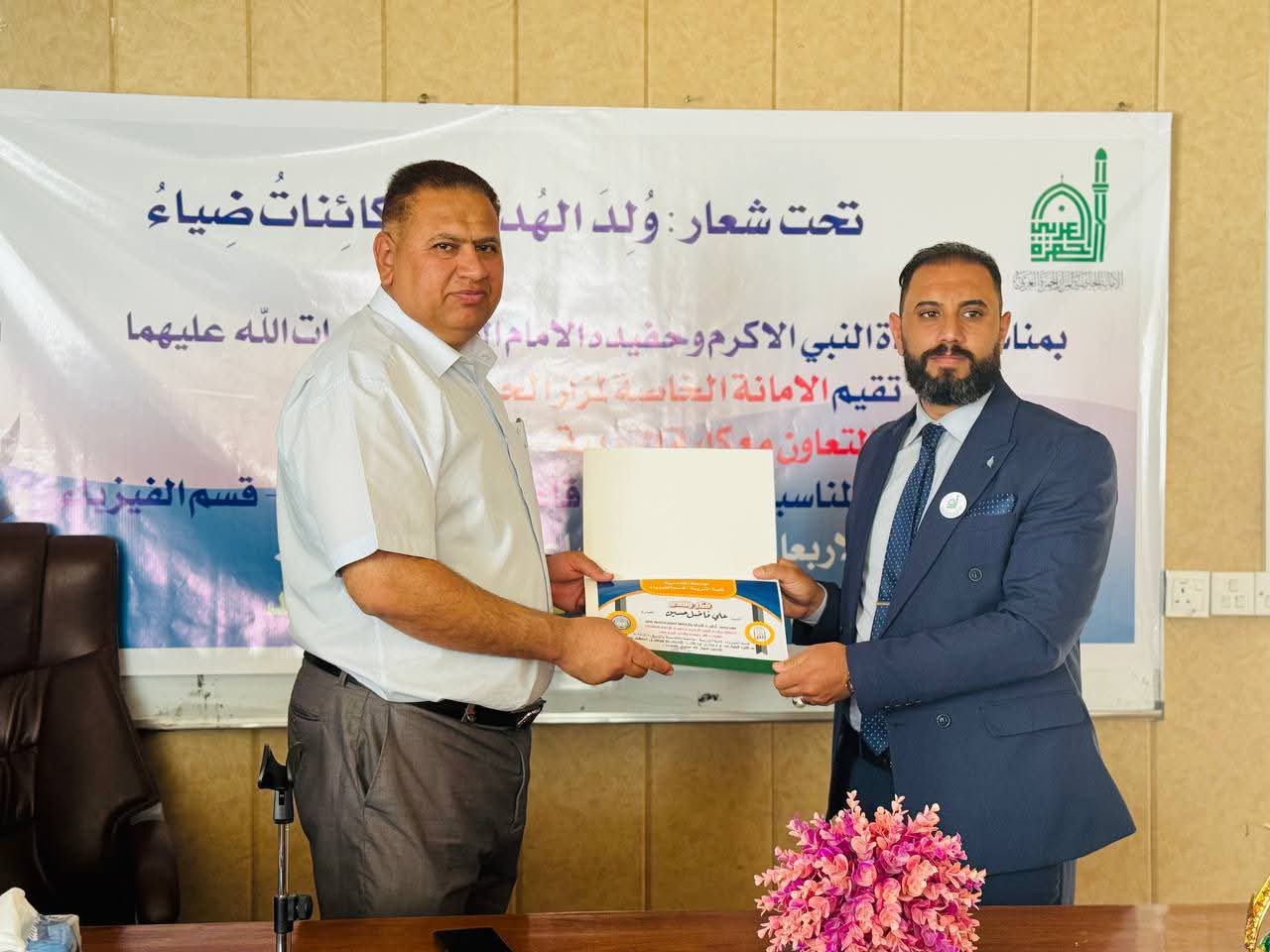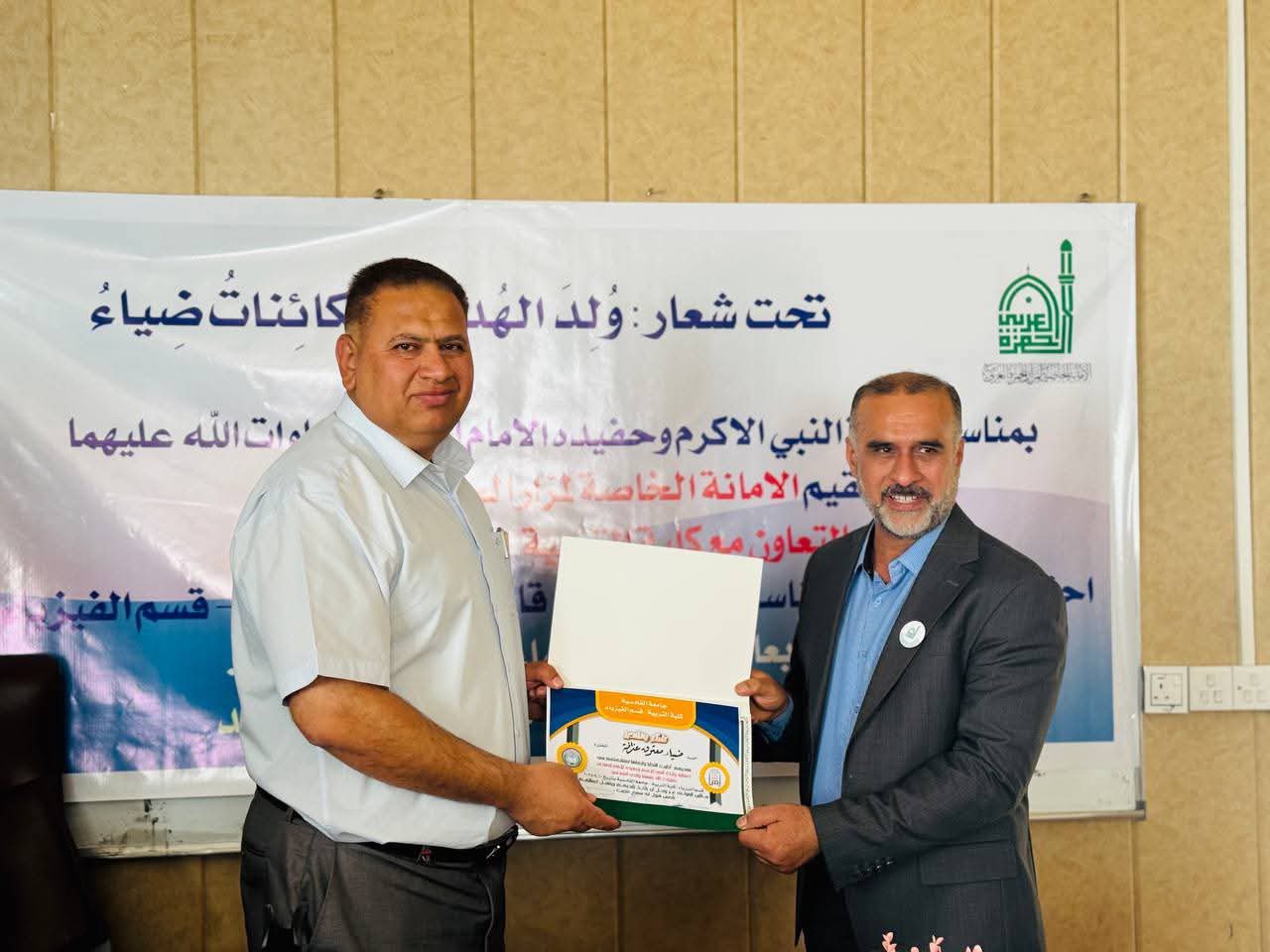أقامة أمانة مزار الحمزة الغربي (رضوان الله تعالى عليه)في بابل احتفاله المركزي بمناسبة ذكرى ولادة النبي الأكرم محمد (صلى الله عليه وآله وسلم) وحفيده الإمام جعفر الصادق (عليه السلام) وذلك على قاعة الدراسات العليا في قسم الفيزياء – كلية التربية بجامعة القادسية، وبالتعاون مع عمادة الكلية.