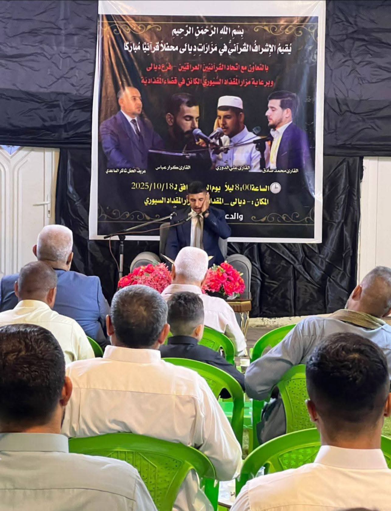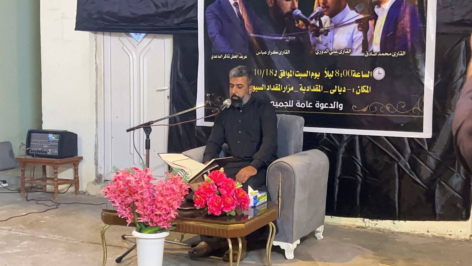 أقامت شُعبة الإشراف القُرآني في مزارات ديالى محفلها القرآني الأسبوعي الثاني فـي مزار السّيـد المُقداد بـن عبد الله السيوري (رضوان الله تعالى عليه) في قضاء المُقداديـة بحضور رسمي من رواد المَحافل القُرآنية المُباركة ، وبِرعاية الأمانة العامّة للمزارات الشيعيّة الشريفة .