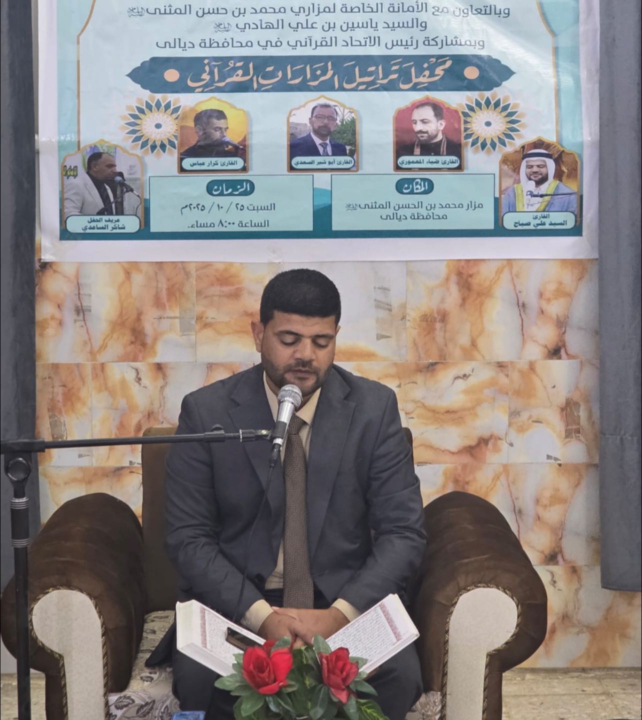 اقامت شُعبـة الإشراف القرآني في مزارات ديالـى محفلها القـرآني الأسبوعي الثاني في مزار السّيـد مُحمد بن الحسن المثنى (رضوان الله تعالى عليـه) في قضـاء الخالص بحضـور رواد المحافـل القرآنيّة المُباركـة ، بإشراف قسـم الشؤون الدينيّة وعُلوم القرآن في الأمانة العامّة للمزارات الشيعيّة الشريفة.