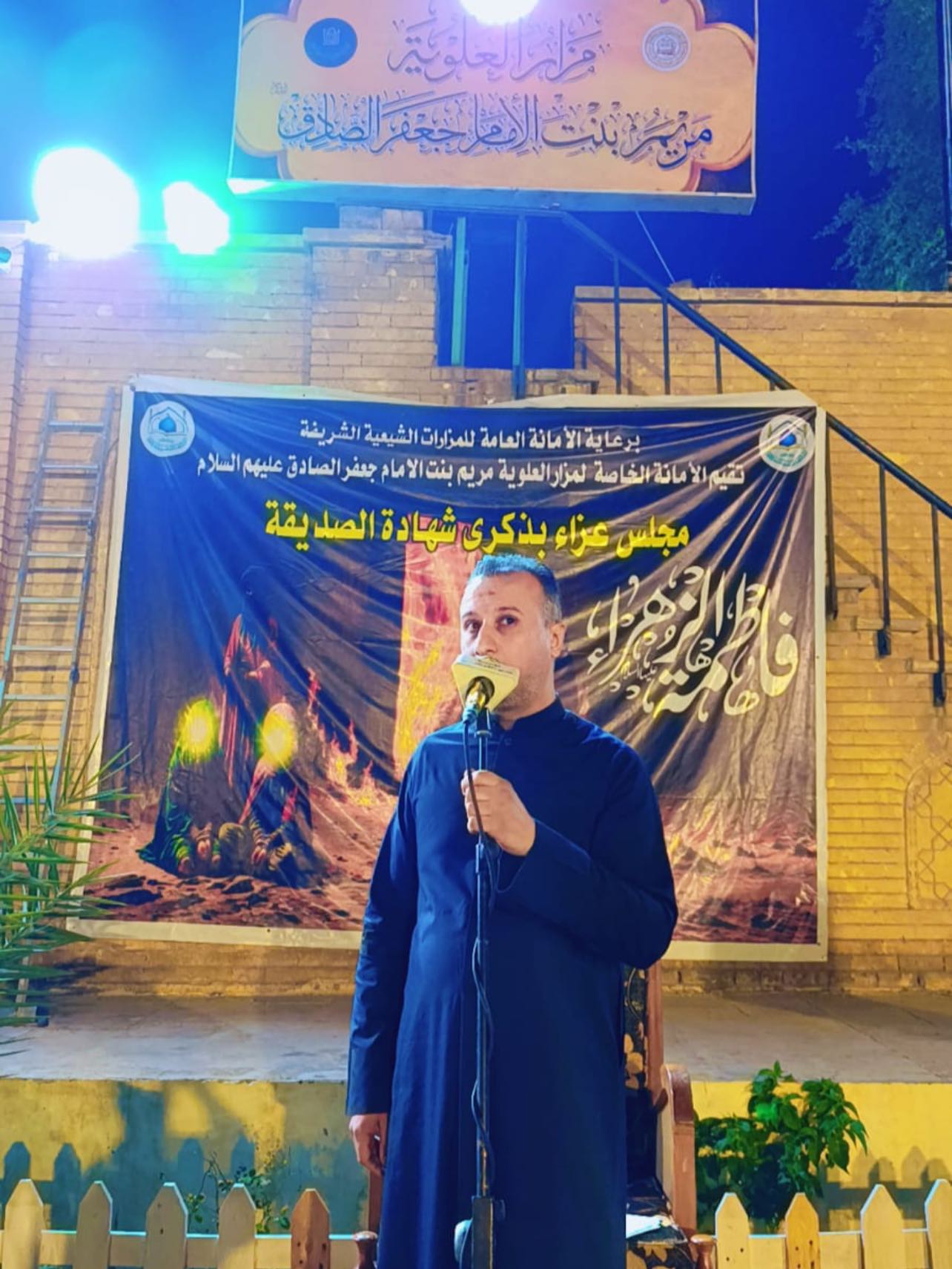 بِرعاية الأمانة العامّة للمزارات الشيعيّة الشريفة ، أقامت الأمانة الخاصّة لمزار العلويّة مريم بنت الإمام الصادق (عليه السّلام) في بغداد مَجلس عزاء وتشييع رمزي للنعش الطاهر بذكرى استشهاد سيدة نساء العالمين الصديقة الكبرى فاطمة الزهراء (عليها السّلام).