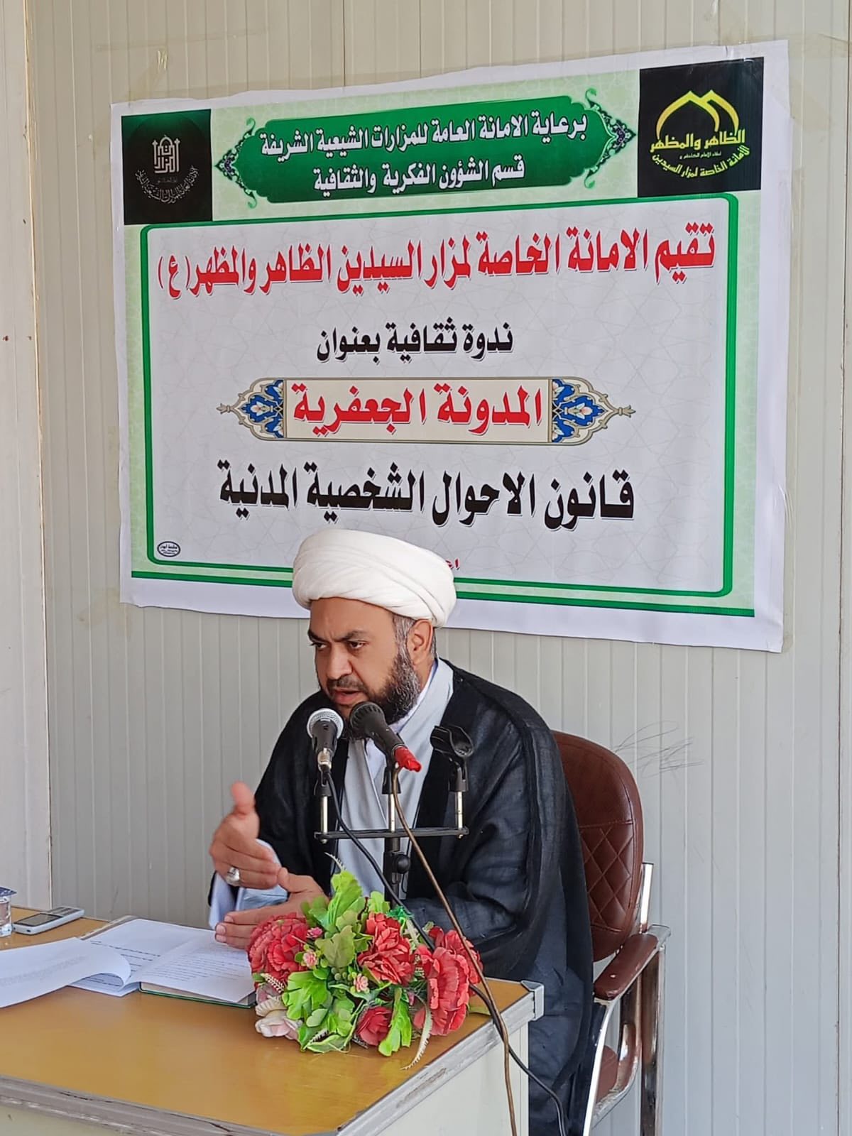 اقامت الأمانة الخاصّة لمزار السّيدين الظاهر والمظهر (رضوان الله تعالى عليهما) في بابل ندوة ثقافيّة تَوعوية بعنوان (المدونة الجعفرية) والتي تناولت موضوع قانون الأحوال المدنية في ضوء الفقه الجعفري ، بِحضور نُخبة من المشايخ ووجهاء المَدينة وجمعٍ من المُهتمين بالشأن الدينيّ والثقافيّ.