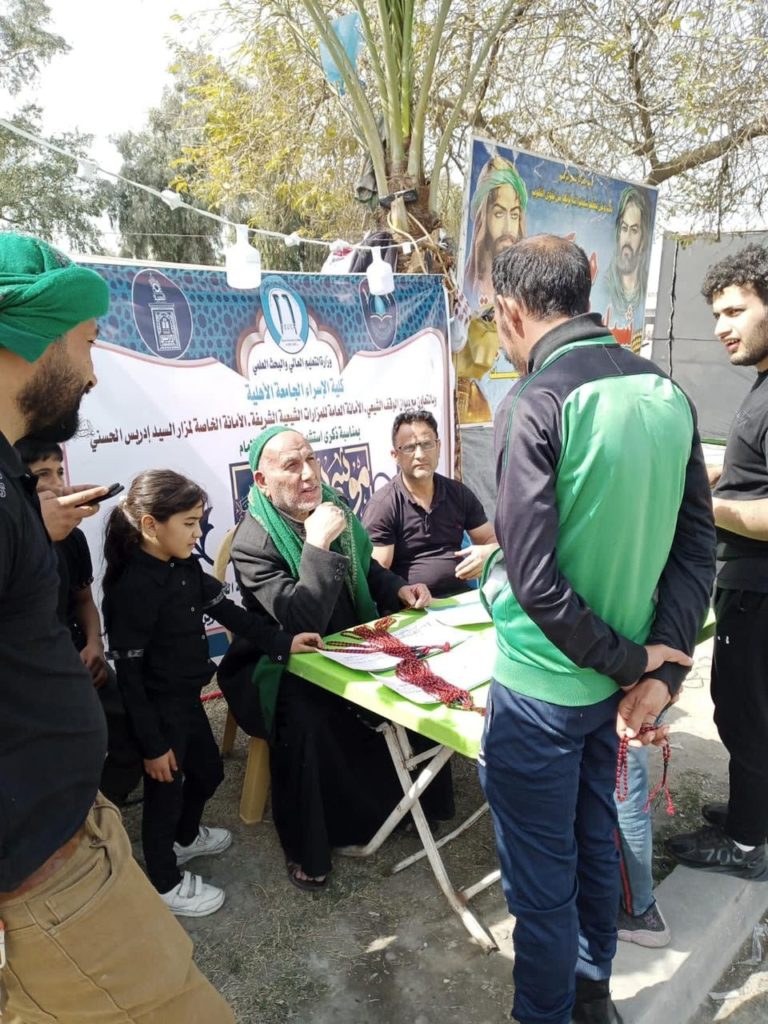 برعايةِ الأمانةِ العامةِ للمزاراتِ ، وبتوجيهٍ من الأمين العام للمزاراتِ الشيعيةِ الأستاذ المهندس فارس الرماحيّ (دامَ توفيقهُ) باشرت الأمانةُ العامّة للمزاراتِ الشيعيةِ الشريفةِ / قسم القُرآن الكريم بمشروعِ المحطات القُرآنيةِ في الزيارةِ الرجبيةِ ؛ وذلك إيذاناً بإعلان الحداد لذكرىٰ استشهاد الإمام المسموم الغريب موسى بن جعفر (عليه السَّلام)، التي ستوافق يوم الأحد المقبل الخامس والعشرين من شهر رجب ؛ لتعليم الزائرين الكرام القراءة الصحيحة لقصار السور ، وبعض أحكام وقواعد التجويد لكتاب الله العزيز ، المشروع الذي ضمَّ خمس محطات توزعت المحطة الأولىٰ في مزارِ السيد إدريس الحسنيّ (رضوان الله تعالى عليه) ، والثانية بالقرب من المسرح الوطني ، والثالثة مقابل الجامعة المستنصرية ، والرابعة مجاورة لجامعة الإمام جعفر الصادق (عليه السَّلام) في حي القاهرة ، والأخيرة في مزارِ السيد الشبليّ (رضوان الله تعالى عليه) في منطقة الگريعات ، هذا وعبّر أغلب الزائرين عن مدىٰ شكرهم للعاملين على هذا المشروع لِما فيه من معلومات قُرآنيّة وافية ، وفائدة كافية للتعلم الصحيح لقراءة القُرآن الكريم ، مثمنين الجهود المَبذولة في سبيلِ إيصال المعلومة وخدمةً لآل النبي الأكرم وذراريهم (عليهم السَّلام) وأصحابهم (رضوان الله تعالى عليهم) .