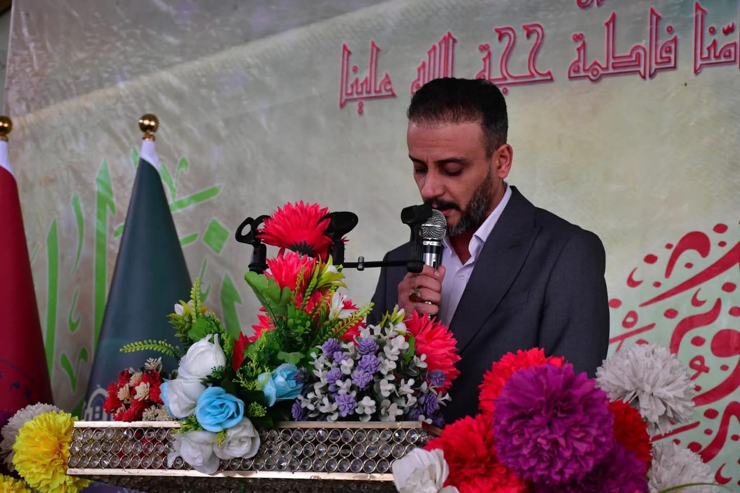 الحفلُ الذي استُهِلّ بآياتٍ من الذكر الحكيم تلاها قارئ ومؤذن المزار الشريف السّيد صلاح العبادي تلتها كلمة الأمانة الخاصّة للمزار القاها الأمين الخاص الحقوقي محمد جعفر الجبوري ” ذاكرا نبذة عن حياة فاطمة الزهراء (عليها السّلام) الشّريفة وايضاً جُملة من خصائصها وصفاتها الكريمة” .