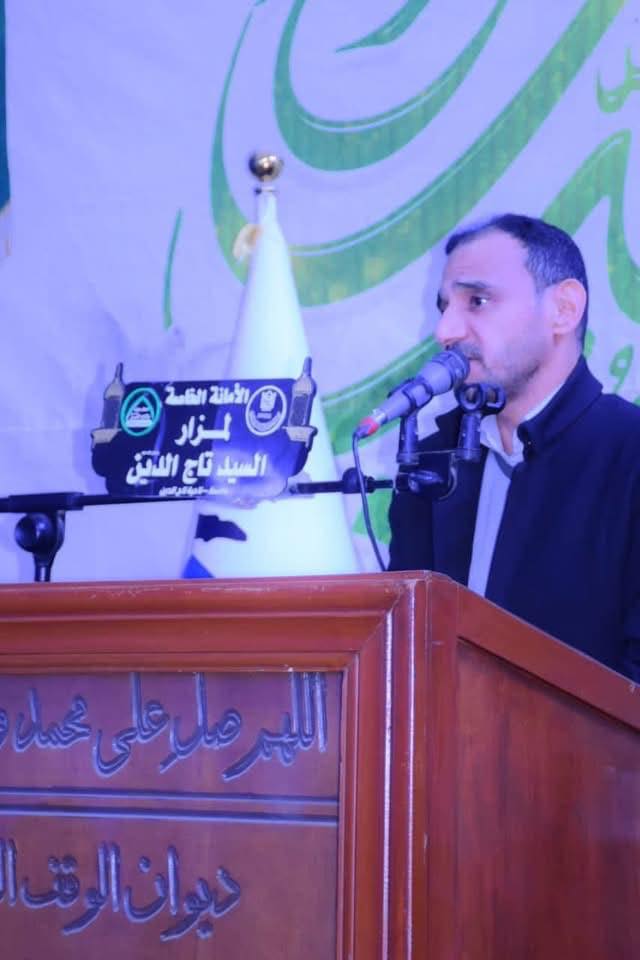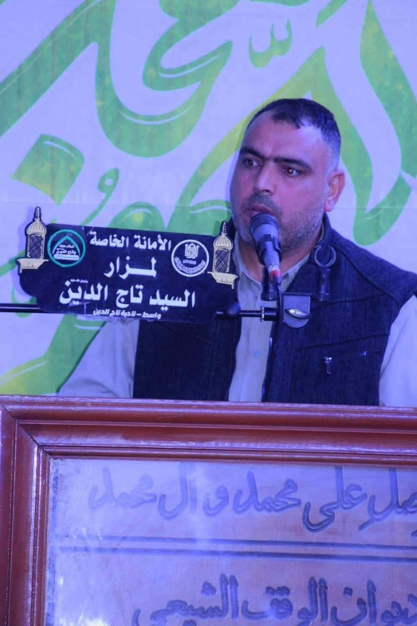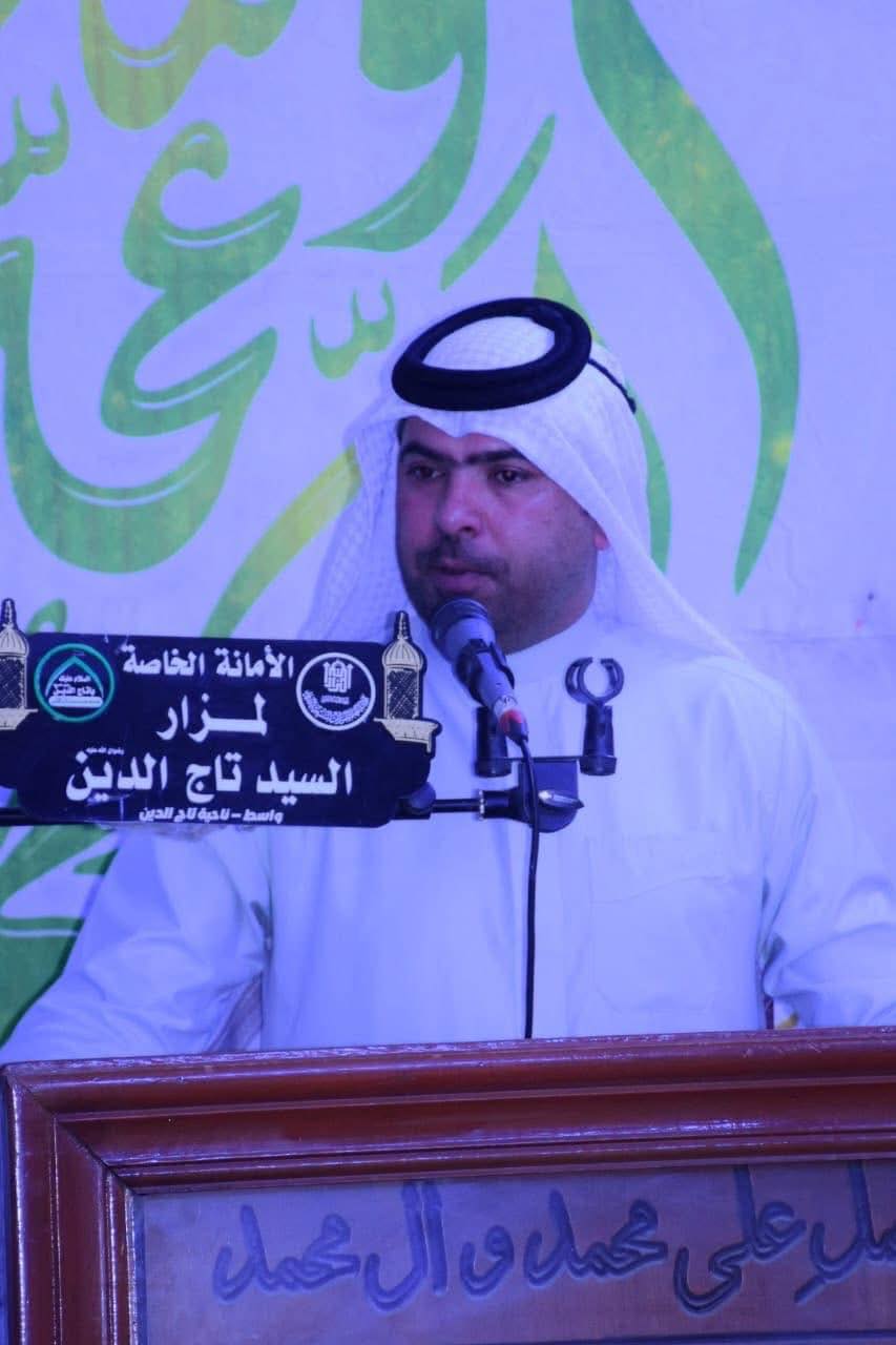 برعايةِ الأمانةِ العامّةِ للمزاراتِ الشّيعيّةِ الشّريفة أقامت الأمانةُ الخاصّةُ لمزارِ السيّدِ تاجِ الدين (رضوانُ اللهِ تعالى عليه) في واسط محفلًا شعريّاً إحياءً لذكرى ولادةِ سيّدةِ نساءِ العالمين فاطمةَ الزهراء (عليها السّلام) بحضورِ جمعٍ مؤمنٍ وفي أجواءٍ روحانيّةٍ تجلّت فيها معاني الولاءِ والارتباطِ بنهجِ أهلِ البيت (عليهم السّلام).