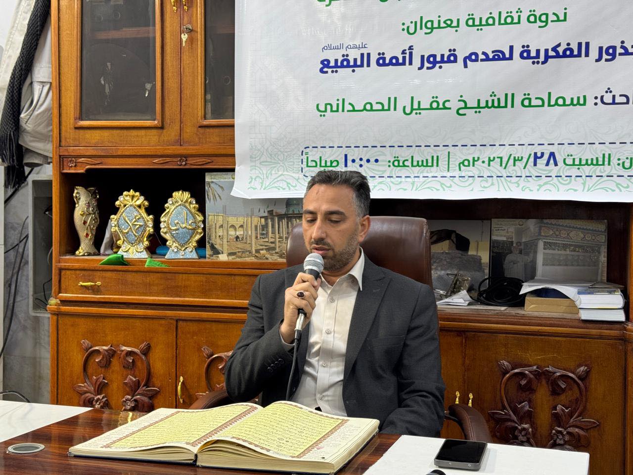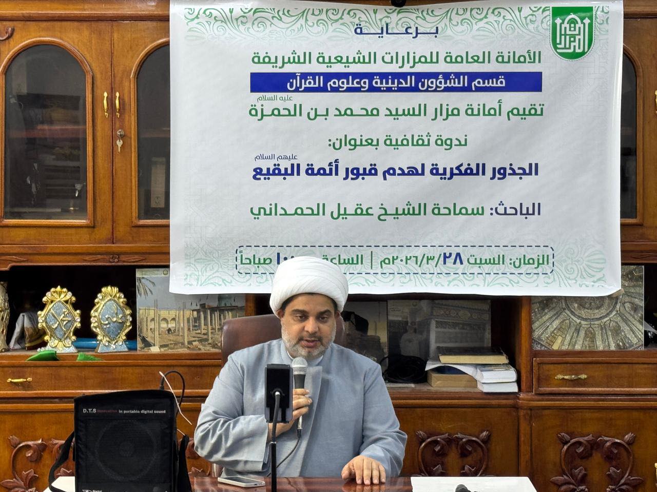 شهدت أمانة مزار السّيد مُحمد بن الحمزة (رضوان اليوم تعالى عليه) في كربلاء المُقدسة ، إقامة ندوة فكرية عقائدية بعنوان (الجذور الفكريّة لهدم أئمة البقيع (عليهم السّلام) ، بِحضور جمعٍ من المؤمنين .