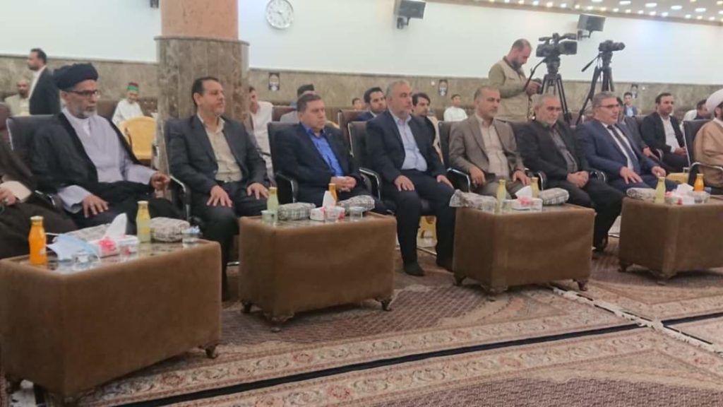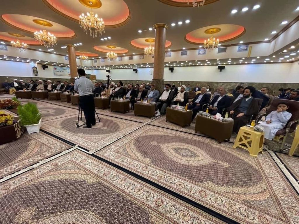وشهدَ الحفلُ إلقاءَ كلمةٍ للمعاون الثقافيّ والدينيّ للأمين العام للمزاراتِ الشيعيةِ الأستاذ الدكتور هاشم العواديّ الذي أوضح : ” أن الأمانة العامّة للمزاراتِ تسعىٰ من خلال بعدها الدينيّ والثقافيّ والفكريّ أن تكون طرفاً في معادلة الصراع الذي يستهدف هويتنا الإسلاميّة ، وإحداث حالة من التوازن التي تسعىٰ من أجلها إلى نشر المفاهيم الحقة وحماية الهوية الإسلامية ووقاية المُجتمع من كل المفاهيم الداخلية سواءً في الفِكر او العقيدة او السلوك ، وهذا ما تسعىٰ إليه الأمانة العامّة للنهوض من خلال مجموعة المزارات المُنتشرة في عموم العراق إلى تأسيس منصة تبليغية وثقافية ويكون على راسها ثلّة من المُتخصصين من أجل الدفاع عن الهوية الإسلامية “.