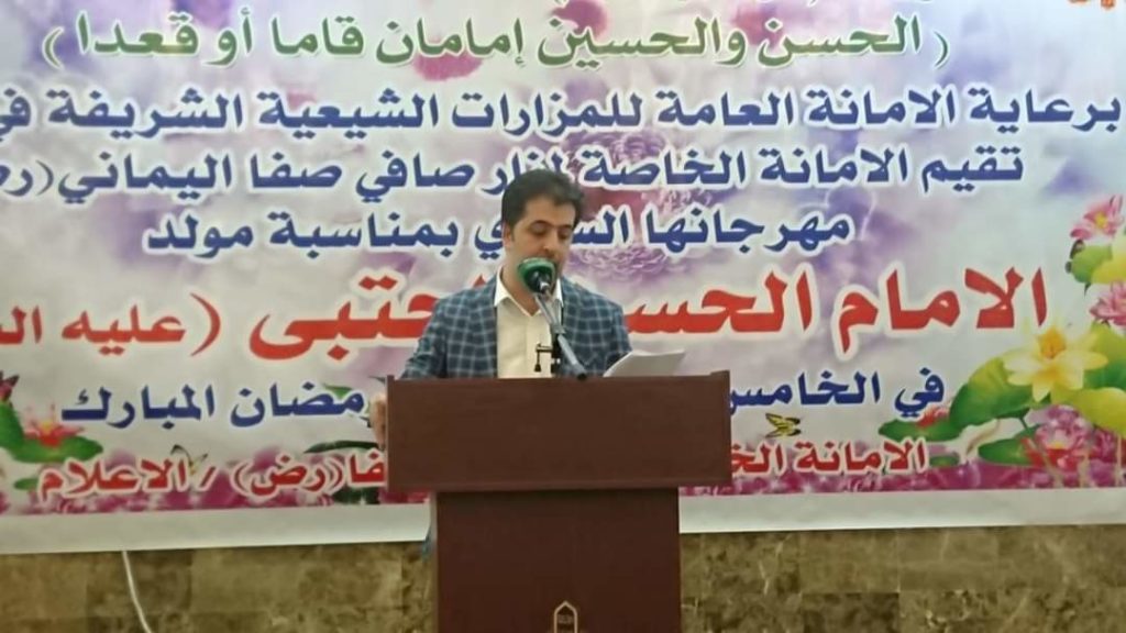 أطلقت الأمانةُ الخاصّة لمزارِ صافي صفا اليمانيّ (رضوان الله تعالىٰ عليه) في النجف الأشرف مهرجانها السنوي لإحياءِ ميلاد كريم أهل البيت الإمام الحَسن المُجتبىٰ (عليه السَّلام) ، بحضورِ جمعٍ غفيرٍ من السادة فضلاء الحوزة العلمية ، والأساتذة الأكاديميين في جامعات النجف الأشرف ، ونخبةٍ من الوجهاء في المُحافظة .